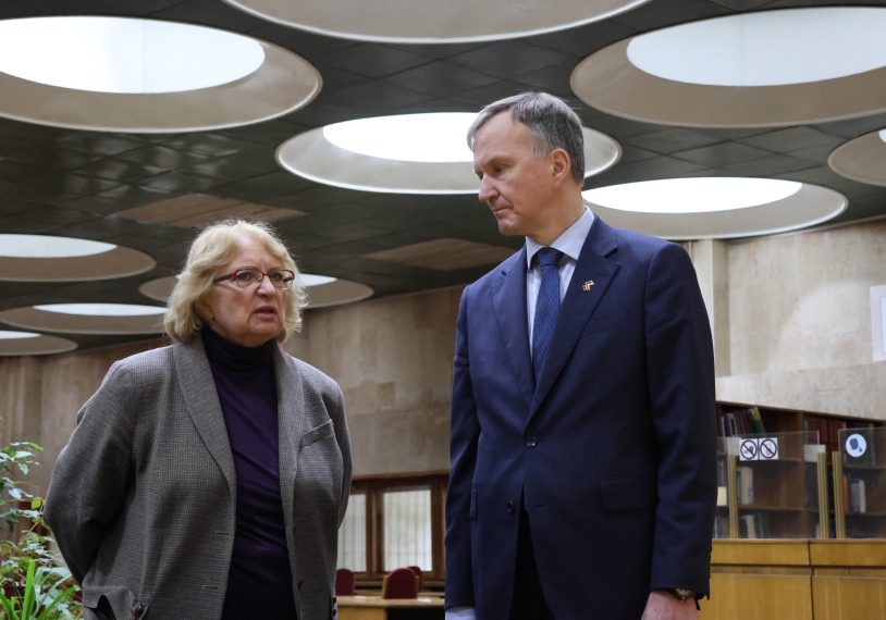 Гостя зустріли генеральний директор НБУВ, член-кореспондент Національної академії наук України Любов Дубровіна, координаторка міжнародної діяльності НБУВ Людмила Дем’янюк, т.в.о завідувача відділу міжнародної інформації та зарубіжних зв’язків Леся Філімончук. Як зазначила, вітаючи пана Посла, Любов Дубровіна, ознайомлення з нашою бібліотекою в корпусі на Голосіївському проспекті є лише початком, оскільки більшість раритетних документів і цінних артефактів акумулюються в історичному корпусі НБУВ на вулиці Володимирській. Але цей візит є дуже важливим для нас знайомством, адже зв’язки нашої установи з латвійськими колегами мають тривалу історію, і ці взаємини завжди були плідними, професійними, їх вирізняли колегіальне й людське взаєморозуміння, бажання обмінятися корисним досвідом.