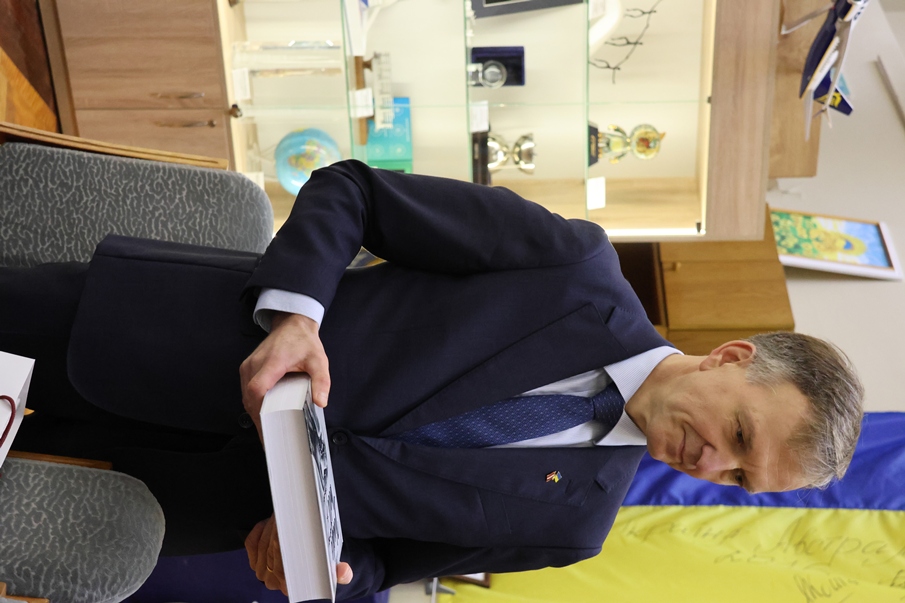 Це був його перший візит до Національної бібліотеки України імені В. І. Вернадського окраїни від недавнього початку здійснення дипломатичної місії в нашій країні. Пан Андрейс Пілдеговічс добровільно обрав Україну як місце своєї роботи у цей непростий час. І візит мав подвійну мету – знайомство з діяльністю НБУВ та передача в дар Бібліотеці особливої книги авторства українського воїна, яку було видано в Латвії.