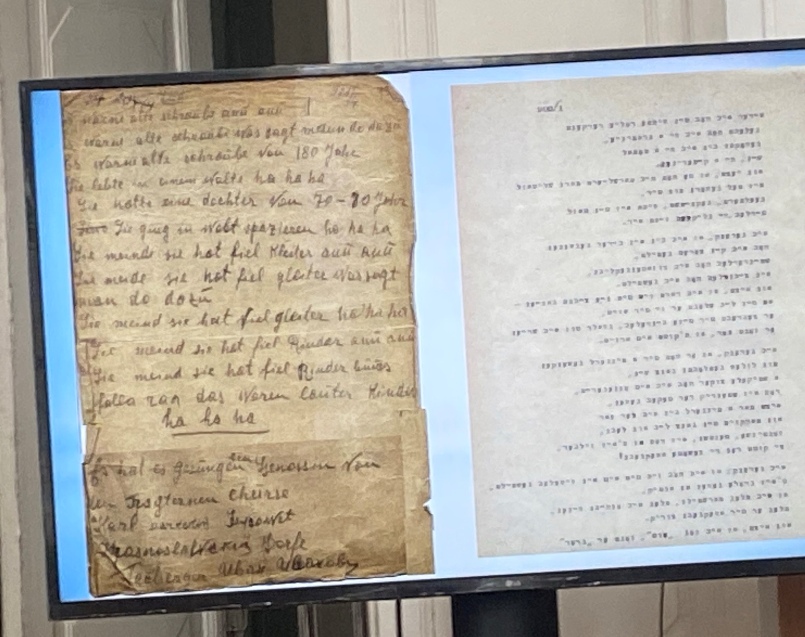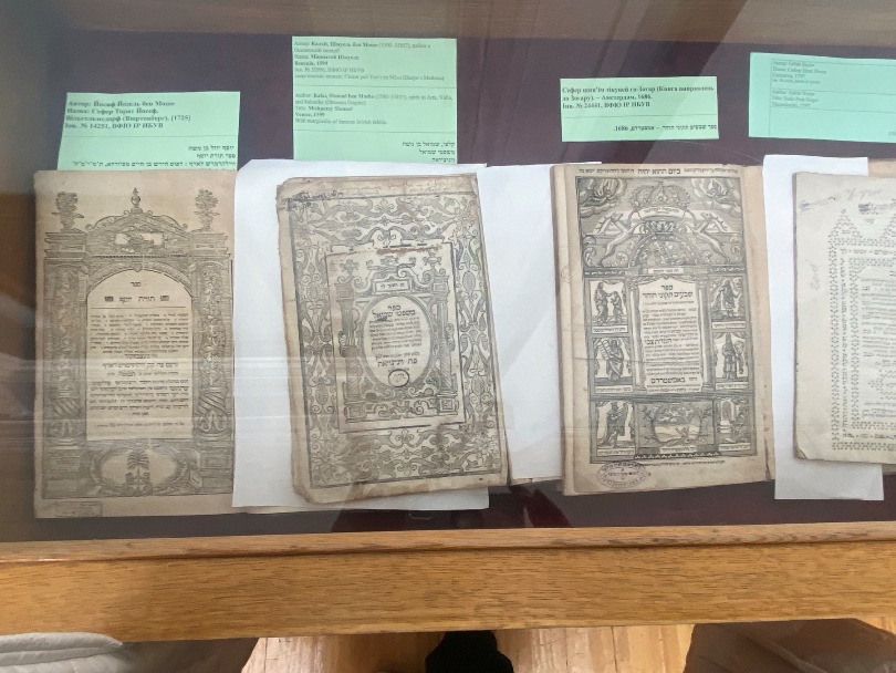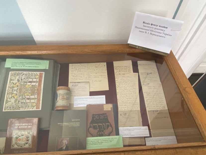 Окрім електронної презентації, працівники відділу фонду юдаїки Інституту рукопису Тетяна Батанова, Ганна Ривкіна, Ольга Горшихіна, Олена Онищенко та Олександра Веселко і відділу бібліотечних зібрань та історичних колекцій Інституту книгознавства підготували для відвідувачів заходу одноденну документальну виставку юдаїки з фондів НБУВ. На цій виставці були представлені видання Вавилонського і Єрусалимського Талмудів ХІХ ст., рукописні записні книги єврейської громади Бердичева (пінкас), оригінали листів видатного єврейського етнографа й письменника С. Ан-ського, періодика їдишем та івритом, дитяча література їдишем та єврейські стародруки, що зберігаються у відділі фонду юдаїки ІР.