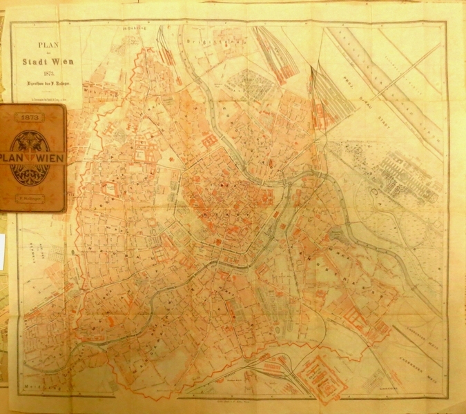 Більшість планів міста складені і мають обкладинки, декілька планів мають коштовні палітурки. Невеличкі розміри планів в складеному вигляді дозволяли носити їх з собою подорожуючи містом, що було дуже зручно. Також обкладинки мають декілька карт Австро-Угорської імперії (поз. №№ 8, 10, 18 Переліку). Сімнадцять з двадцяти картографічних документів, що представлені на виставці, надруковані німецькою, два атласи - французькою, один план міста – російською (поз № 14 Переліку). Деякі плани Відня вражають безліччю реклами підприємств і їх виробів, різноманітних товарів і послуг (поз. № 12, 14 Переліку), реклама розміщена не тільки на вільних від плану місцях, але й на самому плані (поз № 12 Переліку). Складається враження, що ці плани є носіями реклами і друкувалися за для неї і за кошти рекламодавців. Реклама відволікає, але в той же час дає можливість ознайомитися з тим, що вироблялося безпосередньо у Відні, які тут надавалися послуги, дізнатися про місця розташування кафе, ресторанів, магазинів, готелів тощо.