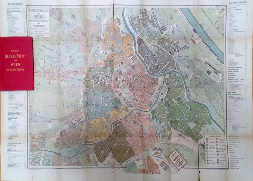 За своєю інформативністю, детального розгляду заслуговує також план Відня 1886 р. (поз № 4 Переліку), на якому показано все найбільш цінне.і цікаве для користувача, що на той час було в місті. Нажаль, за межами плану залишилася така архітектурна перлина, як літня резиденція Габсбургів – Шенбрун. План має координатну сітку, яка допомагає віднайти той чи інший об»ект. Округи виділено кольором і підписано. Місто поділено на квартали, з нумерацією будинків, На плані показані також трамвайні маршрути, р. Дунай і Дунайський канал.