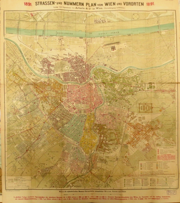 Округи Відня, що відображалися, практично,на всіх картографічних документах того періоду, мали цифрове позначення (римські цифри), а також назви, на деяких планах вони крім того, виділялися різними кольорами.