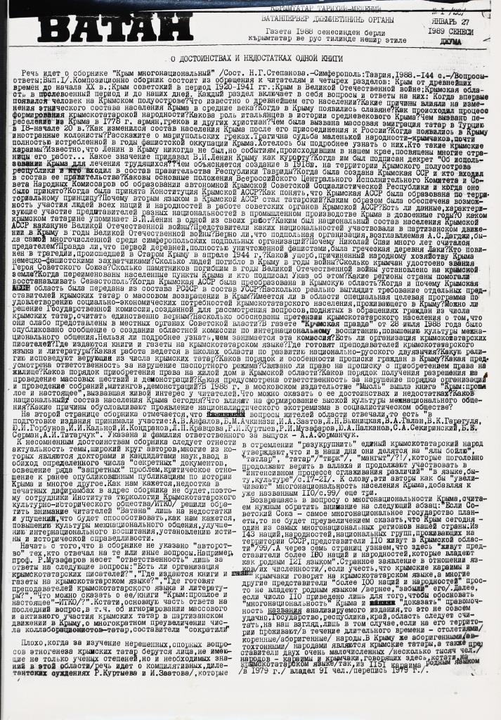 Звертають на себе увагу також газети «Ватан» («Батьківщина») – кримськотатарська газета, що друкувалася в Сімферополі в 1989 році та «Азатамарт» («Борьба за свободу») – информационный листок Украинского комитета «Друзья Армении». – Київ, 1990.