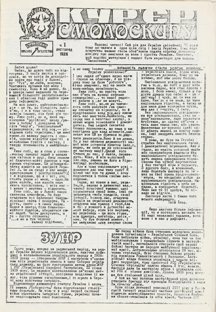 До уваги читачів – виставка, присвячена газетам самвидаву 1989–1995 років.