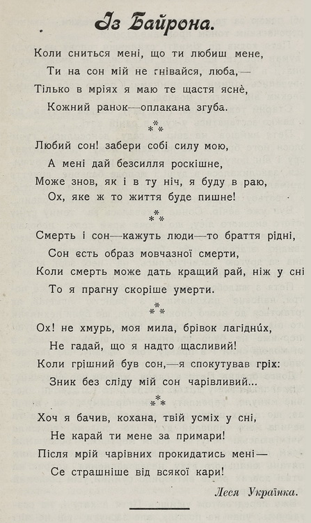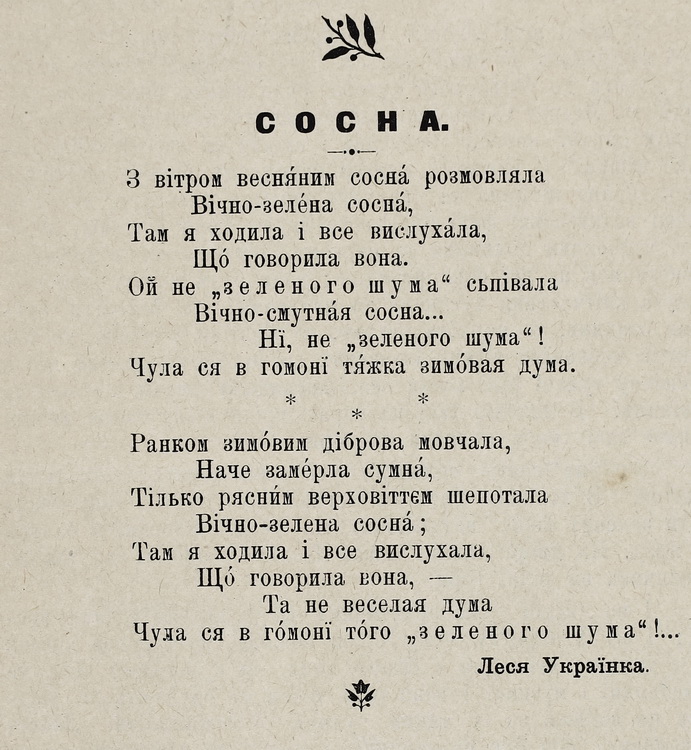 Перші літературні твори юної Лариси Косач були опубліковані у львівському літературно-науковому і громадському двотижневому часописі «Зоря» (1880–1897), який з 1885 р. став органом Літературного товариства ім. Т. Шевченка (згодом — Наукового товариства ім. Т. Шевченка).