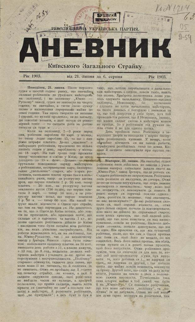 - Дневник Київського загального страйку – Київ-Чернівці, 1903.