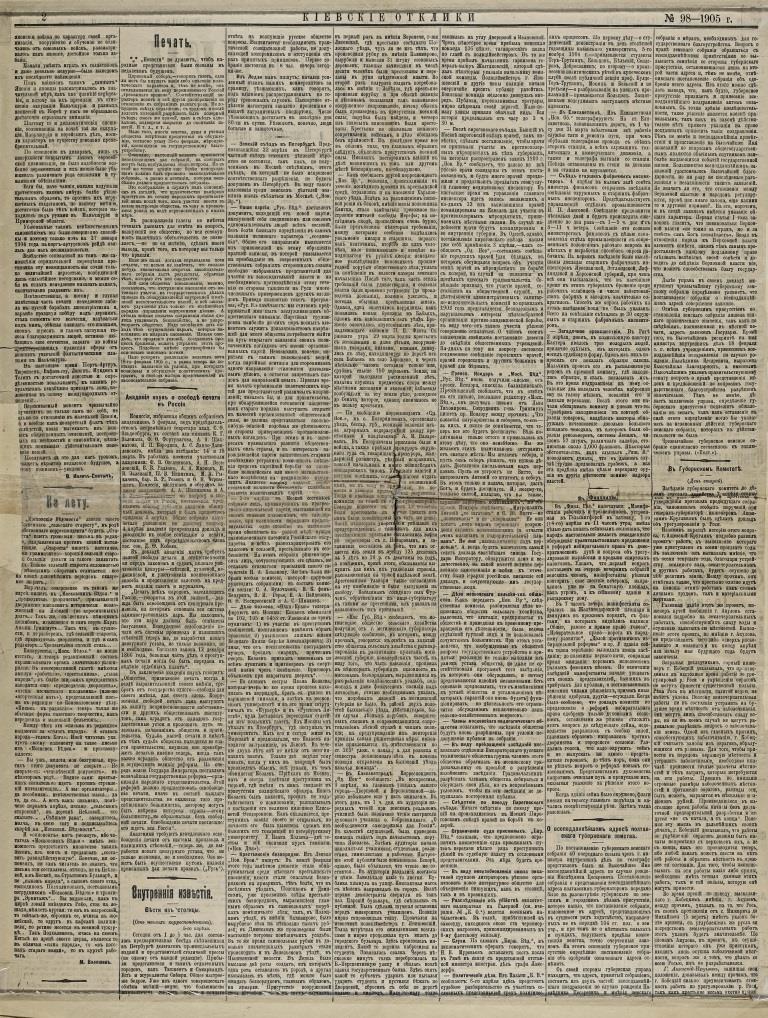 - Академія наукъ о свободе печати въ Россіи // Киевские отклики. – Киев, 1905. – № 98 (8 (21 апреля)). – С. 2.