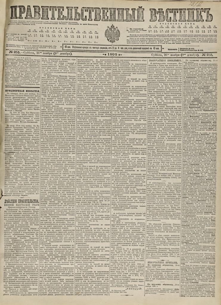 - Действія правительства. Именной высочайшій Указъ Правительствующему Сенату [Тимчасові правила про друк] // Правительственный вестникъ. – Санктъ-Петербургъ, 1905. – № 255 (26-го ноября (9-го декабря)). – С. 1.