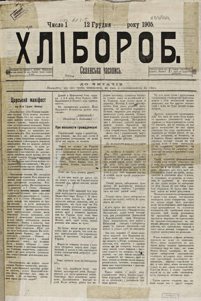 - Хлібороб. Редактор одвічальний Микола Шемет. Видається «явочним порядком» коштами і заходами Лубенської Української Громади. – Лубні, 1905.