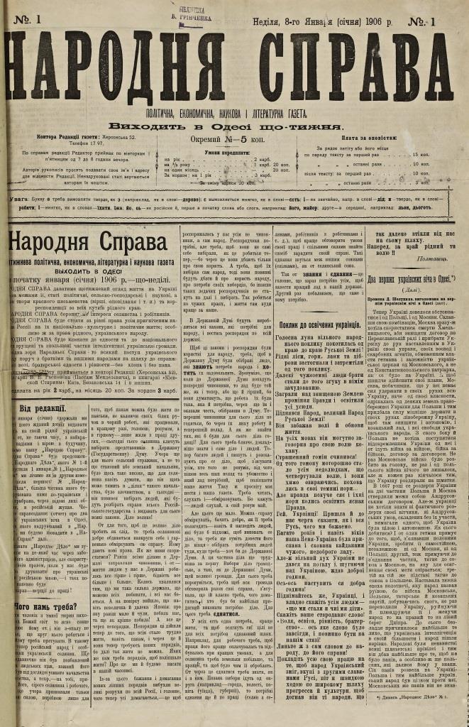 - Народня справа. Видає і за ред. відповідає І. Луценко. – Одеса, 1906.