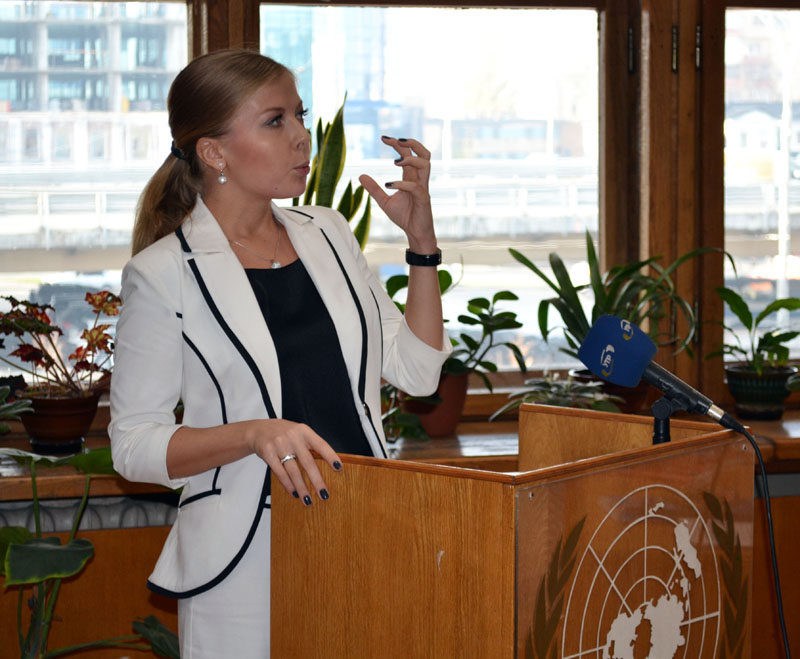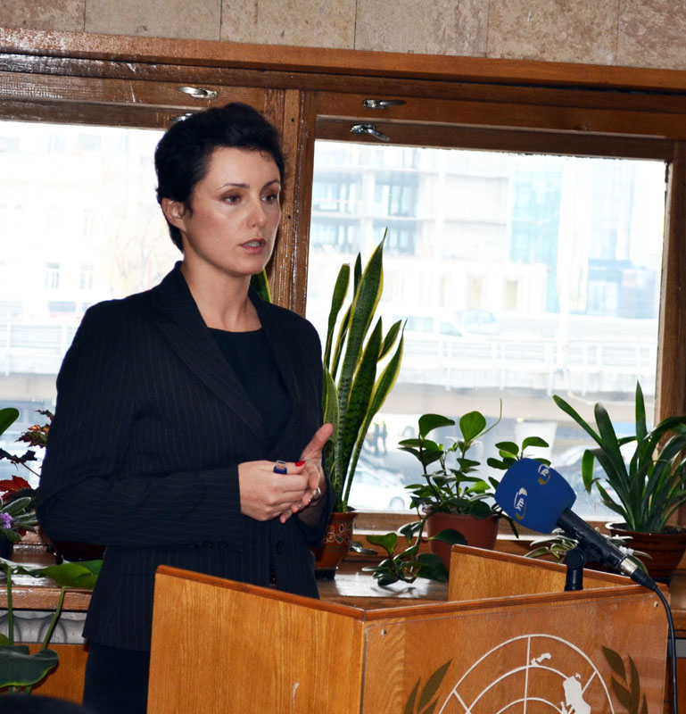 Зі вступним словом виступила Завідувач відділу міжнародної інформації та зарубіжних зв’язків НБУВ Тетяна Іванівна Арсеєнко. Пані Арсеєнко зауважила, що ООН – це організація, яка несе світу мир, підтримує права і свободи людини, вільний доступ громадян до інформації, і НБУВ, як депозитарій ООН, сприяє поширенню цих прав і свобод в Україні.