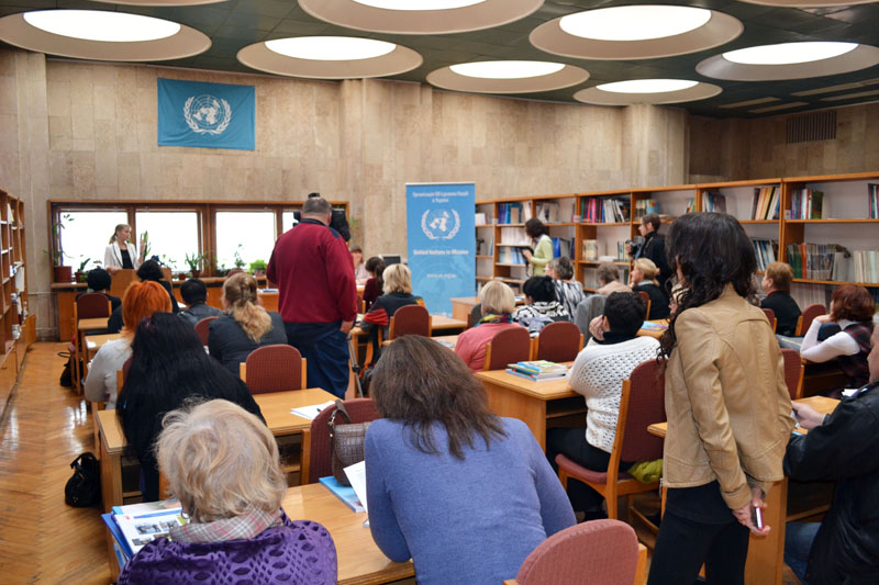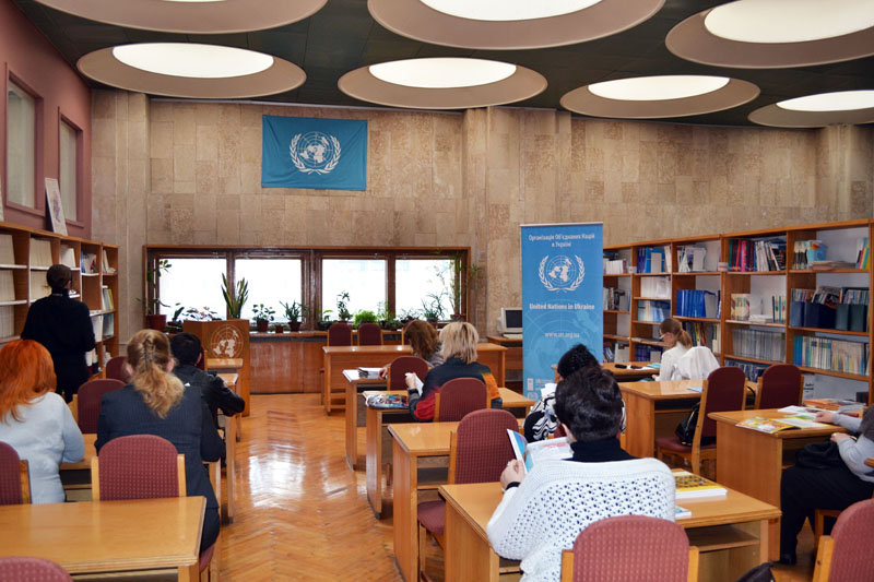 Зустріч проходила за участю науковців, керівників бібліотек, бібліотекарів установ м. Києва із запрошенням працівників Представництва ООН в Україні.