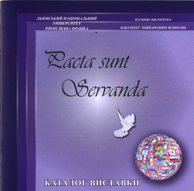 1. Pacta sunt servanda. Праці викладачів Львівського університету у сфері міжнародного права (кін. XIX- поч. XX cт.): каталог виставки [до 350-річчя Львівського національного університету імені Івана Франка та 20-річчя факультету міжнародних відносин]. - Львів : ПП Ярд, 2012. - 24 с.