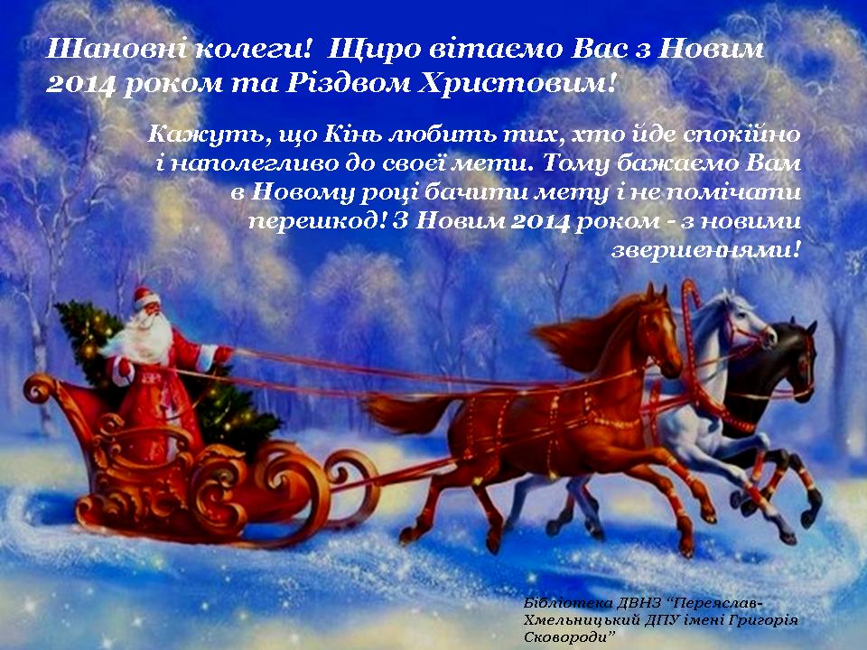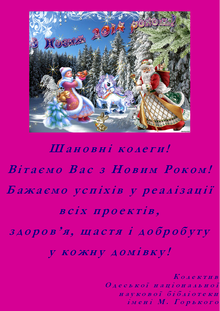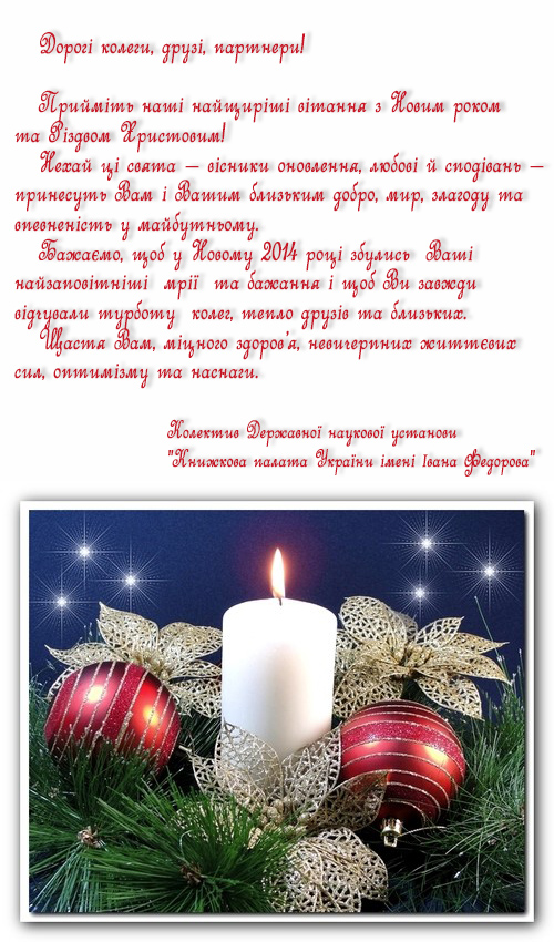 Шановні колеги! Від усього серця вітаємо Вас з наступаючим Новим 2014 роком та Різдвом Христовим!