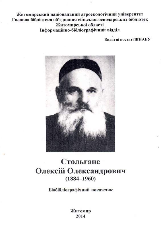 4. Стольгане Олексій Олександрович (1884 – 1960): біобібліогр. покажч. / уклад. Н. Г. Яремчук ; авт. вступ. ст. Е. О. Горєва-Слидзюк ; відп. за вип. М. В. Ігнатюк ; Житомир. нац. агроекол. ун-т, Головна бібліотека об’єднання с.-г. б-к Житомир. обл. Інформ.-бібліогр. від. – Житомир, 2014. – 18 с. – (Видатні постаті ЖНАЕУ).