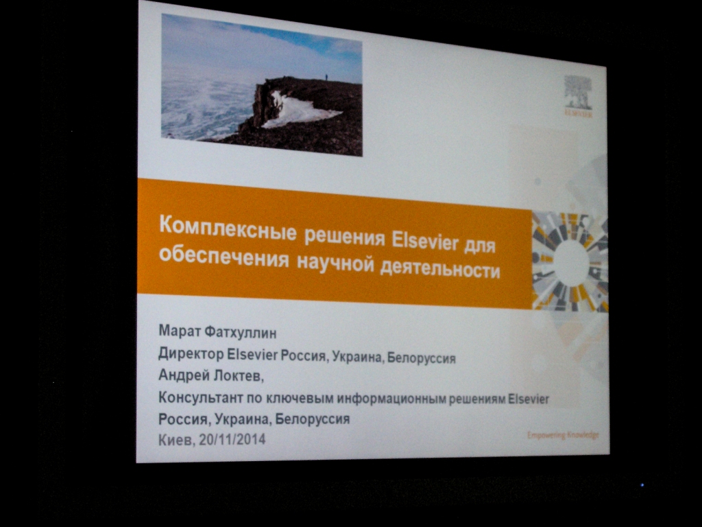 Так, 20 листопада цього року для бібліотекарів мережі установ НАН України було організовано навчально-практичний семінар «Наукометрія у фундаментальних та прикладних дослідженнях» за участю представників компанії Elsevier B.V. (інформаційні продукти SCOPUS, Mendeley та ScienceDirect) та компанії Thomson Reuters (інформаційні продукті Web of Science, EndNote). До програми ІХ-ї Міжнародної наукової конференції було внесено майстер клас «Ресурси Elsevier на допомогу науці», проведений представниками компанії.