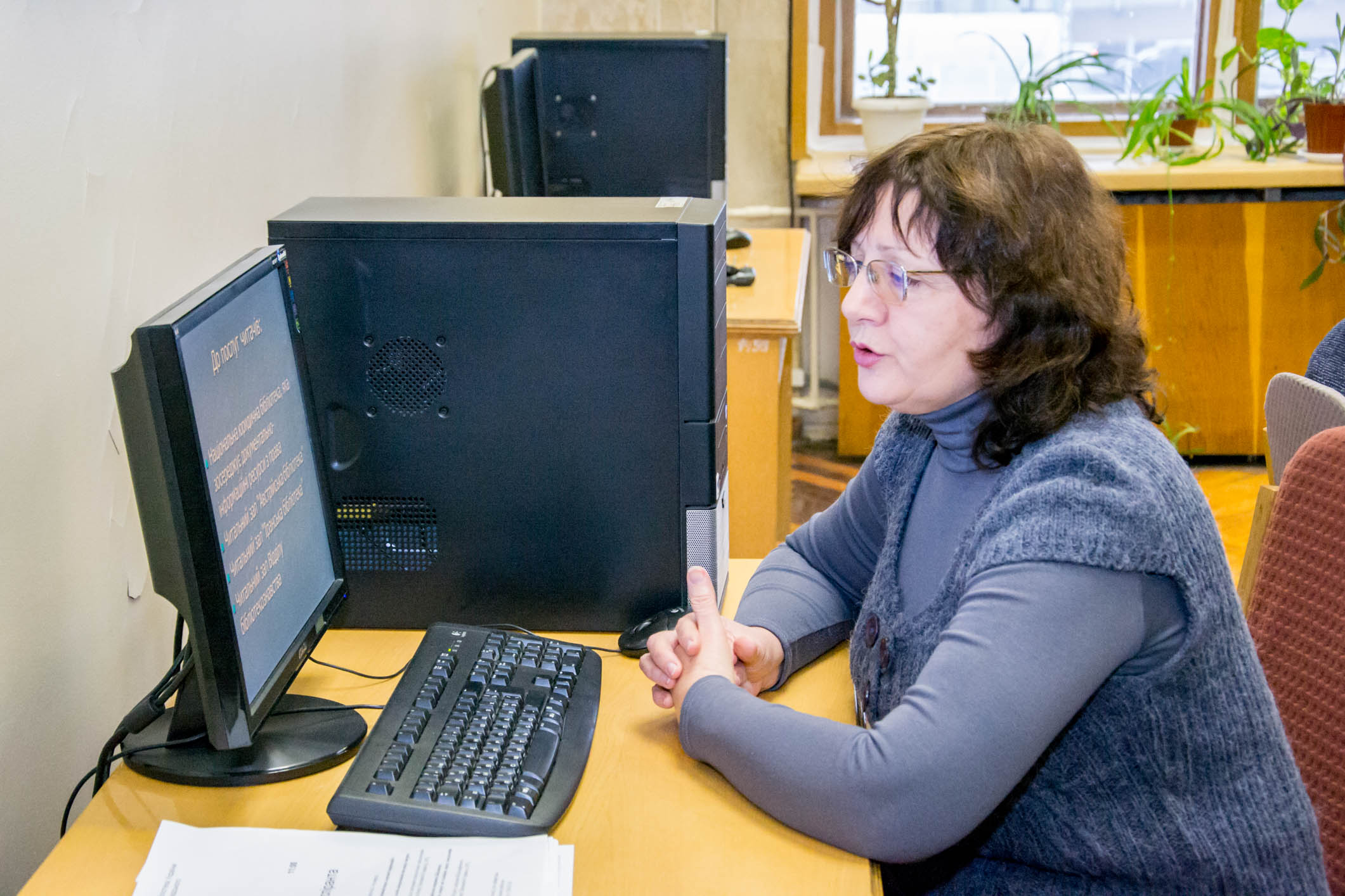 З огляду на це, в рамках Дня аспріанта було проведено семінар-практикум з теми «Інтегрований пошук наукової інформації», під час якого завідувач сектору відділу довідково-бібліографічного обслуговування НБУВ Світлана Горбань ознайомила майбутніх науковців зі складовими довідково-бібліографічного апарату НБУВ та методикою бібліографічного пошуку інформації. Вона зосередила увагу аспірантів на тому, що довідково-бібліографічний апарат (ДБА) Національної бібліотеки України імені В.І. Вернадського – це не лише система традиційних бібліотечних каталогів і картотек, а й фонд довідково-бібліографічних видань (нормативних документів, енциклопедій, словників, бібліографічних посібників, електронних ресурсів, літописів, видань органів НТІ тощо), і численні каталоги читальних залів (дисертацій, нових надходжень, картографічних видань, публікацій ООН, періодичних видань, відділу бібліотекознавства та ін.), Національної юридичної бібліотеки, Австрійської та Іранської бібліотек. Далі доповідач детально зупинилася на технології пошуку інформації, необхідної для проведення наукового дослідження, поінформувала про різноманітні джерела, в яких можна знайти посилання на вітчизняні та зарубіжні наукові публікації, надала практичні поради щодо оформлення результатів пошуку.