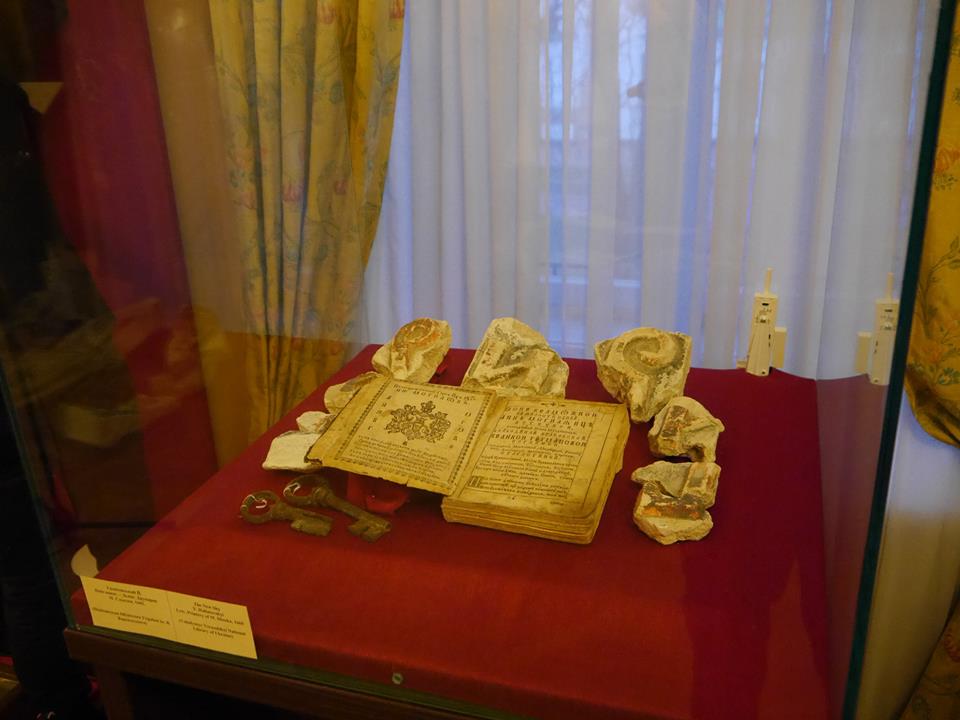 Деякі з експонованих стародруків, приміром, «Євангеліє учительне» (Київ: Друкарня Києво-Печерської лаври, 1637), здавна зберігалися в Києво-Софійському монастирі, який з часів Петра Могили виконував функції резиденції київських митрополитів.