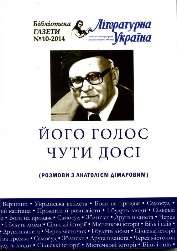 Його голос чути досі (розмови з Анатолієм Дімаровим) / упоряд. : Є. Дімарова, С. Козак. – Київ : Літ. Україна, 2014. – 260 с. – (Бібліотека газети «Літературна Україна». – 2014 ; № 10).