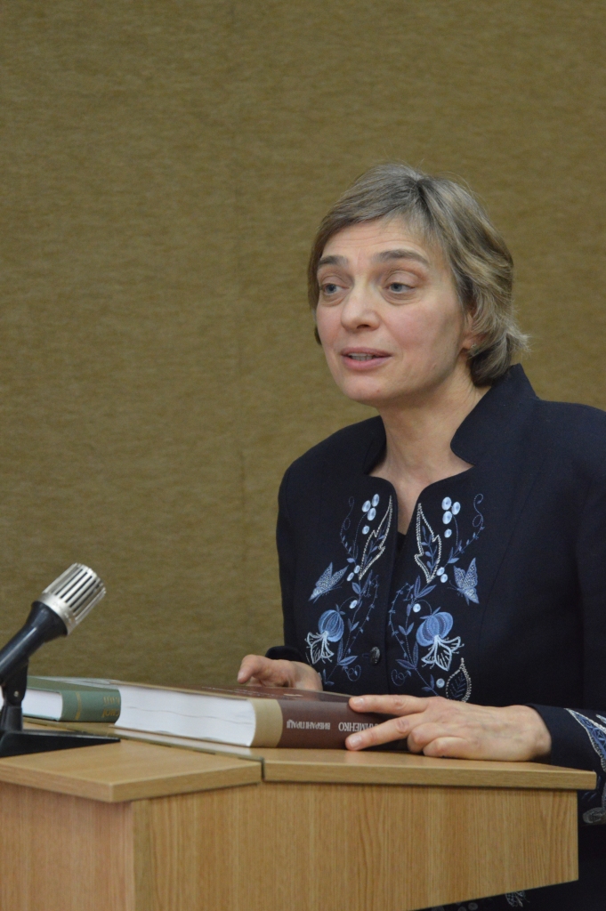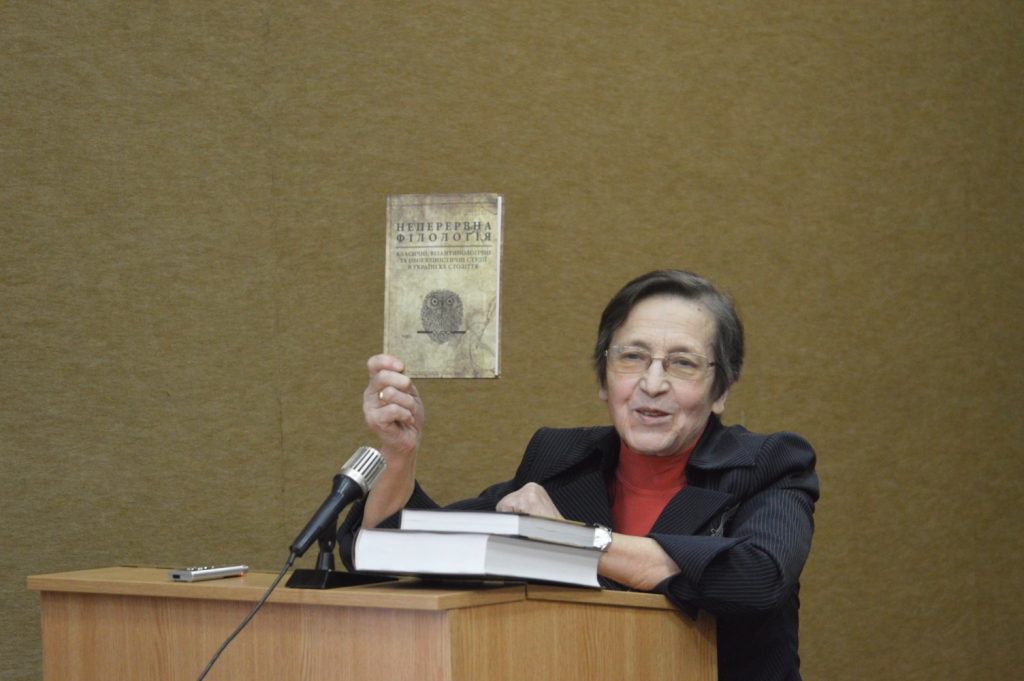 Питанням захисту української мови присвятила свій виступ Ніна Клименко, професор кафедри елліністики Інституту філології Київського національного університету імені Тараса Шевченка, член-кореспондент НАН України. Мовознавець наголосила на тому, що нові умови життя країни потребують нових засобів захисту мови. «Сьогодні нам потрібні нові підручники, навчальні посібники, програми та ігри для дітей. Тільки так ми зможемо подолати проблему безпеки української мови», – зауважила Ніна Клименко. Доповідач також торкнулась питань формування культурно-історичного вітчизняного інформаційного ресурсу та презентувала колективну монографію «Неперервна філологія: класичні, візантологічні та неоелліністичні студії в Україні ХХ століття», видання вибраних праць мовознавців Андрія Олександровича Білецького та Тетяни Миколаївни Чернишової.