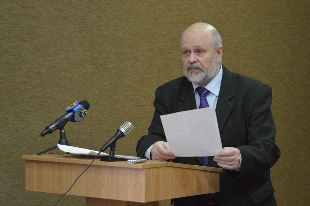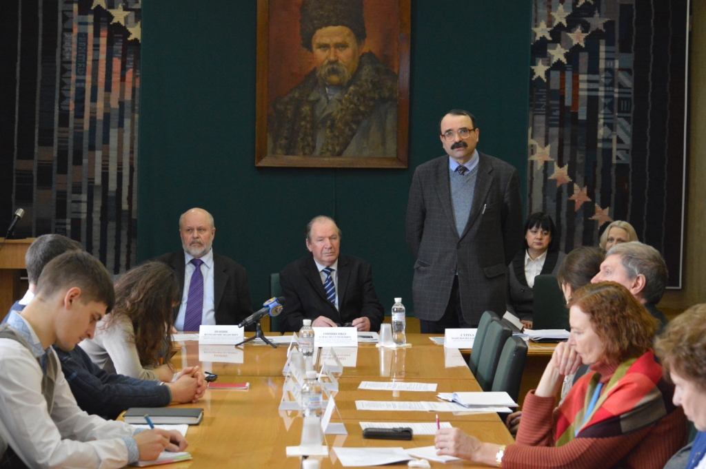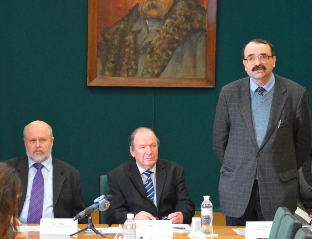Володимир Попик зачитав привітання учасникам круглого столу від Бориса Патона, президента НАН України, та Лілії Гриневич, народного депутата України, голови Комітету Верховної Ради з питань науки і освіти.