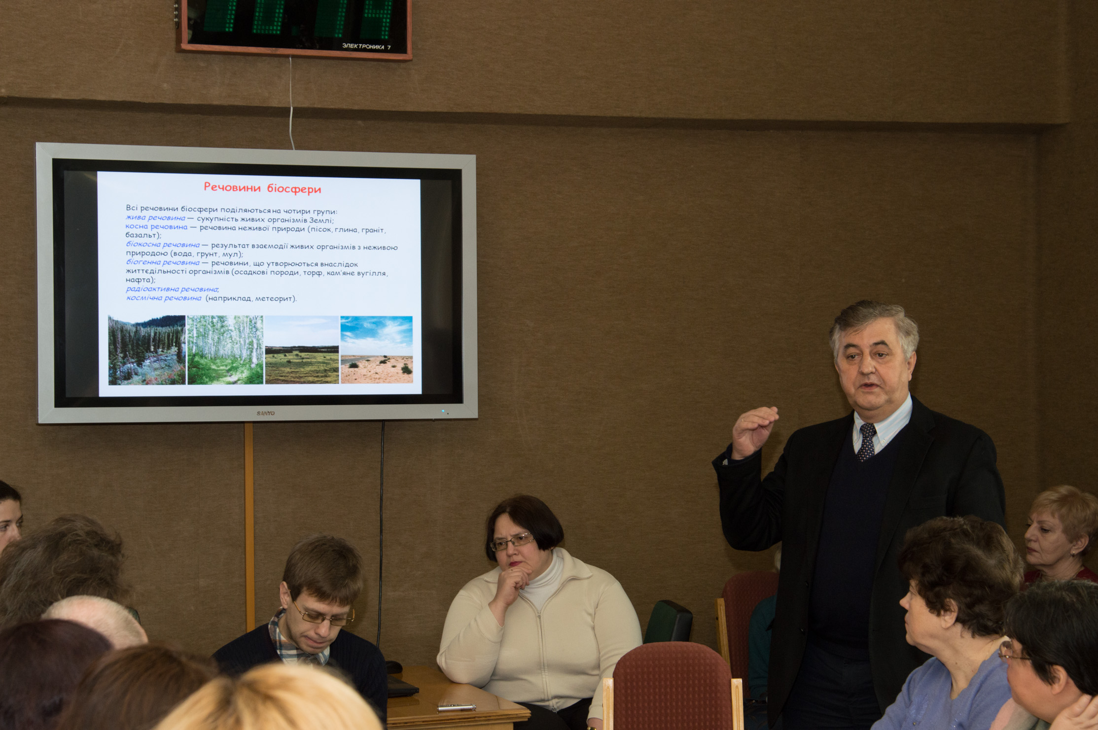 Погляд на вчення про ноосферу В.І. Вернадського в світлі сучасної біології розкрив у своїй доповіді академік Ярослав Блюм, вчений у галузі клітинної біології та біотехнології рослин, директор Державної установи «Інститут харчової біотехнології та геноміки НАН України». Окресливши у підсумку основні передумови виникнення ноосфери за Вернадським (розселення людини по всій поверхні Землі; розвиток всепланетних систем зв’язку, створення єдиної для людства інформаційної системи; відкриття нових джерел енергії; перемога демократії та доступ до управління широких народних мас; більш широке залучення людей до занять наукою), доповідач констатував: «Працям Вернадського був властивий історичний оптимізм: у незворотному розвитку наукового знання він бачив єдиний доказ існування прогресу».