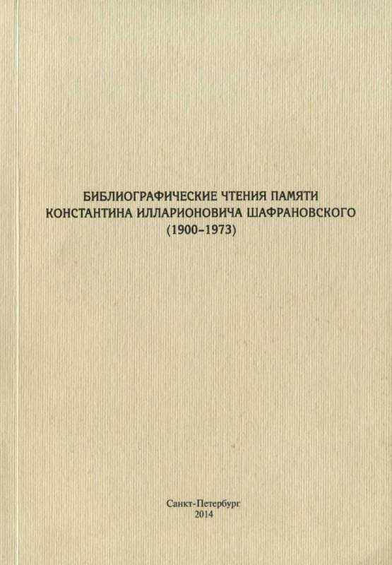 4. Библиографические чтения памяти Константина Иллариововича Шафрановского (1900-1973). - СПб. : БАН, 2014. - 292 с.;