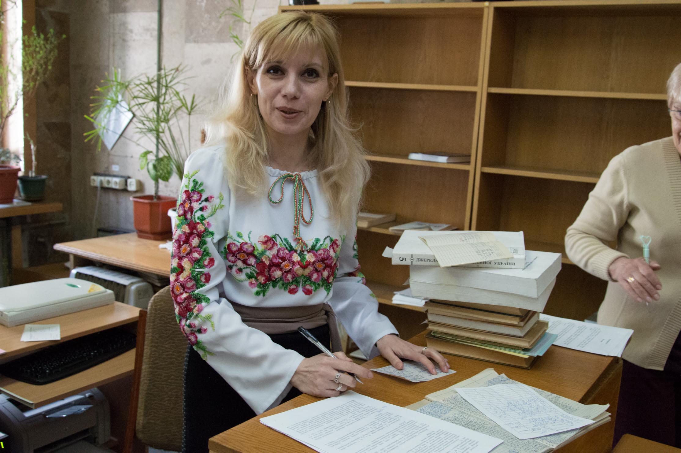До колективу Бібліотеки долучилися багато користувачів Бібліотеки й учасників Міжнародної наукової конференції «Науковий потенціал славістики: історичні здобутки та тенденції розвитку», що саме сьогодні про відбувалася в НБУВ. Для учасників флешмобу прес-служба НБУВ організувала фотосесію «Вернадка у вишиванці».