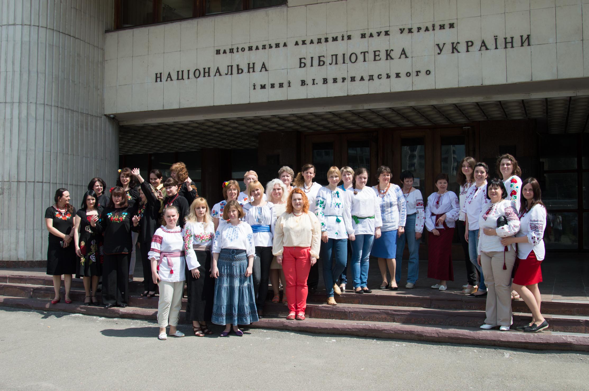 Сьогодні, 21 травня 2015 року Україна святкує День вишиванки. Співробітники Національної бібліотеки України імені В.І.Вернадського цього року вперше долучилися до його святкування та взяли участь у загальнонаціональному флешмобі «Одягни вишиванку», що відбувся на заклик його організаторів – групи громадських діячів і журналістів – та за підтримки Міністерством інформаційної політики України.