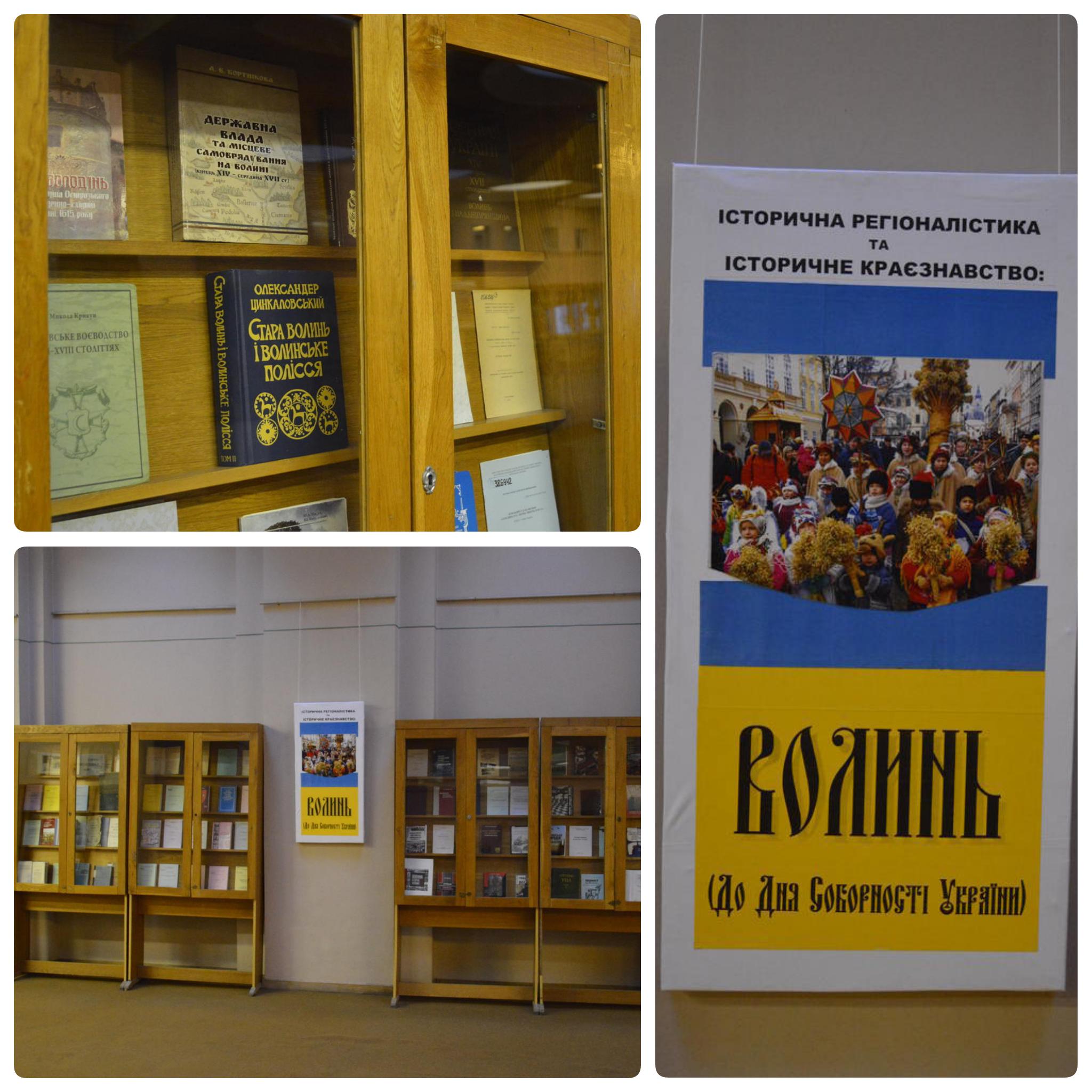 З нагоди святкування 22 січня Дня Соборності України виставковий сектор відділу комплексних наукових та науково-інформаційних проектів Інституту бібліотекознавства НБУВ організував книжково-ілюстративну виставку із циклу «Історична регіоналістика та історичне краєзнавство: Волинь».