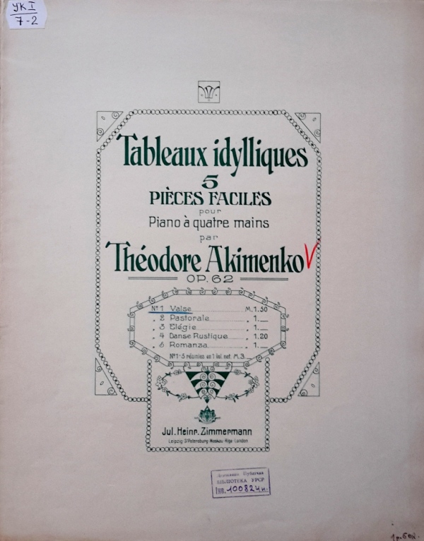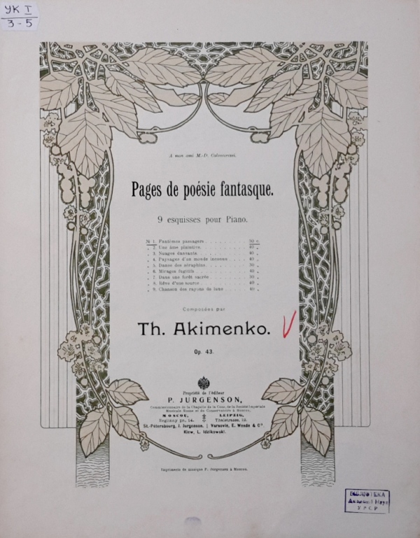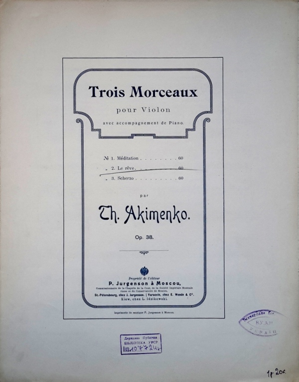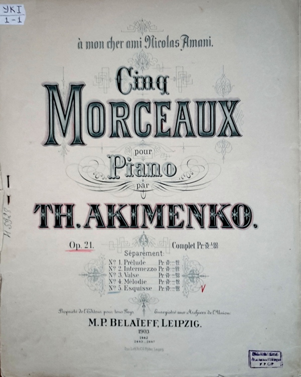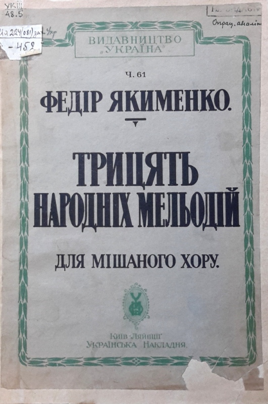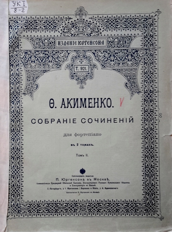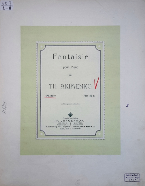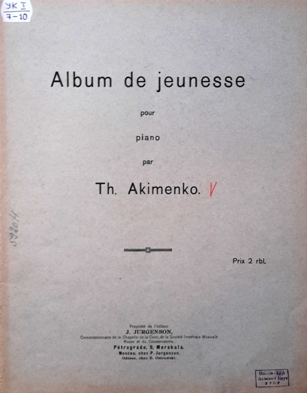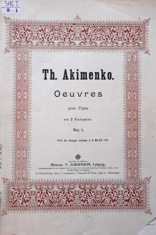 У фондах нашого відділу зберігається значна кількість видань Федора Якименка. Добре збереглися й широко представлено інструментальні та вокальні твори композитора, видані у М. П. Бєляєва (СПб-Лейпціг), П. Юргенсона (Москва-Лейпціг), В. Бесселя (СПБ, Москва), Н. Маречека (Харків-Київ), Л. Ідзіковського (Київ), Ю. Циммермана (СПб, Москва-Лейпціг), І. Юргенсона (СПб, Петроград), Л. Вінклера (Петроград), у Лемберга, Лекае (Петроград, Москва), а також видані у Державному видавництві України (ДВУ, Київ), видавництві «Україна : Українська накладня» (Київ-Лейпціг), «Українському громадському видавничому фонді» (Прага) та ін. У нашій колекції є примірники з його автографами, ноти з бібліотеки композитора, що надає їм особливу історико-культурну цінність.