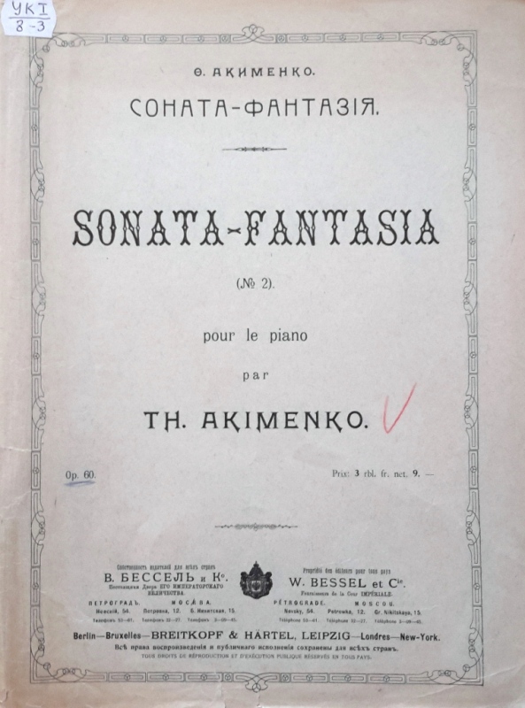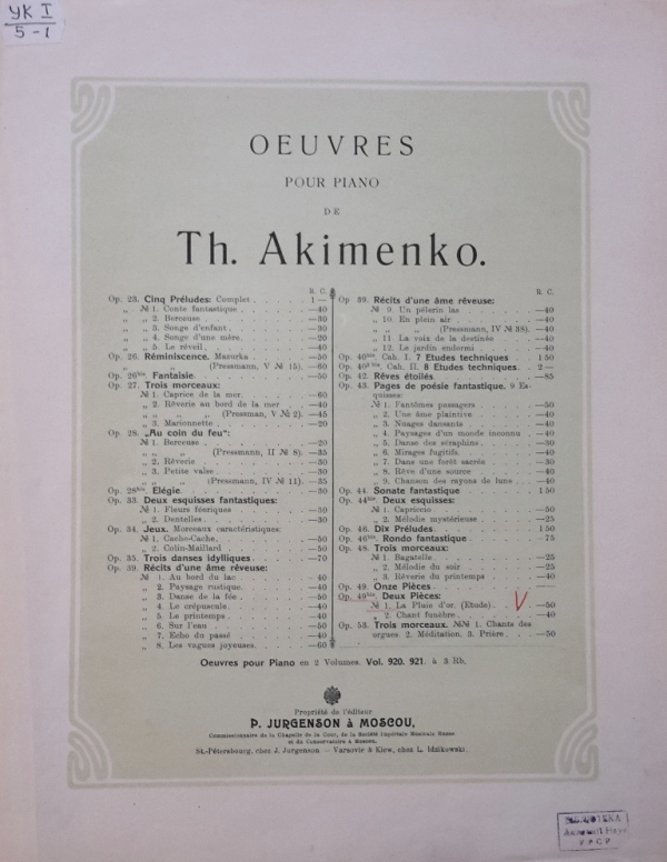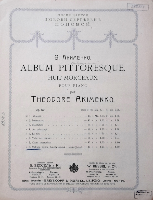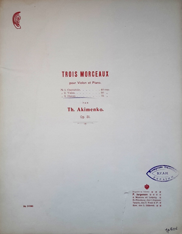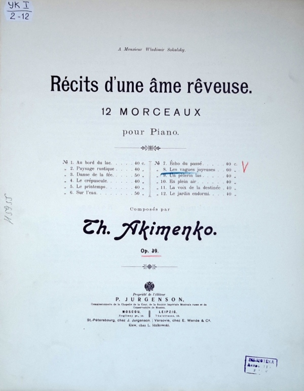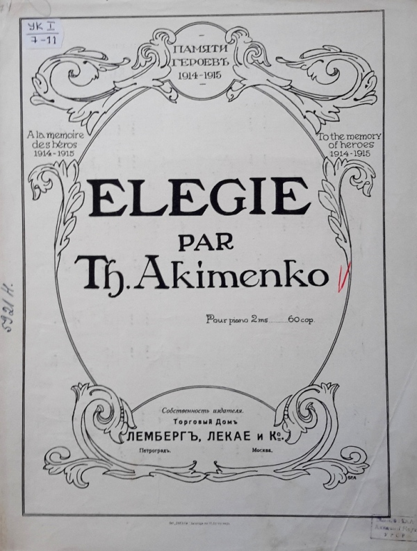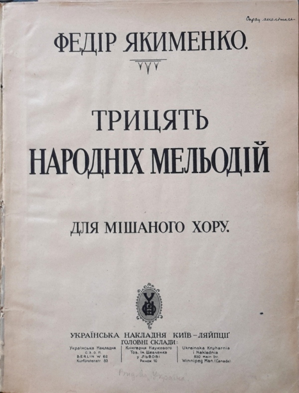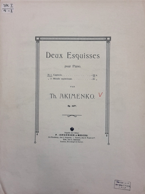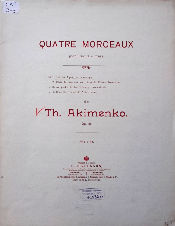 У фондах нашого відділу зберігається значна кількість видань Федора Якименка. Добре збереглися й широко представлено інструментальні та вокальні твори композитора, видані у М. П. Бєляєва (СПб-Лейпціг), П. Юргенсона (Москва-Лейпціг), В. Бесселя (СПБ, Москва), Н. Маречека (Харків-Київ), Л. Ідзіковського (Київ), Ю. Циммермана (СПб, Москва-Лейпціг), І. Юргенсона (СПб, Петроград), Л. Вінклера (Петроград), у Лемберга, Лекае (Петроград, Москва), а також видані у Державному видавництві України (ДВУ, Київ), видавництві «Україна : Українська накладня» (Київ-Лейпціг), «Українському громадському видавничому фонді» (Прага) та ін. У нашій колекції є примірники з його автографами, ноти з бібліотеки композитора, що надає їм особливу історико-культурну цінність.