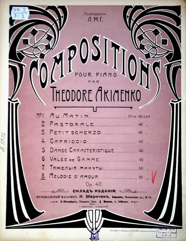 Народився Федір Якименко 140 років тому – 8/20 лютого 1876 р. у музично обдарованій сім’ї в українському селі Піски, що поблизу Харкова. У десятирічному віці Федора відібрали навчатися до Петербурзької Придворної співочої капели. Саме там майбутній композитор отримав ґрунтовну музичну освіту. Він навчався грі на фортепіано у М. Балакирева та О. Ляпунова (1886–1895 рр.), а згодом (1900 р.) закінчив Санкт-Петербургську консерваторію з композиції у М. Римського-Корсакова та А. Лядова. Під час навчання Якименко працював учителем на диригентських курсах Придворної співочої капели. Тоді ж розпочався і його композиторський творчий шлях.