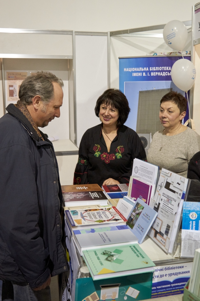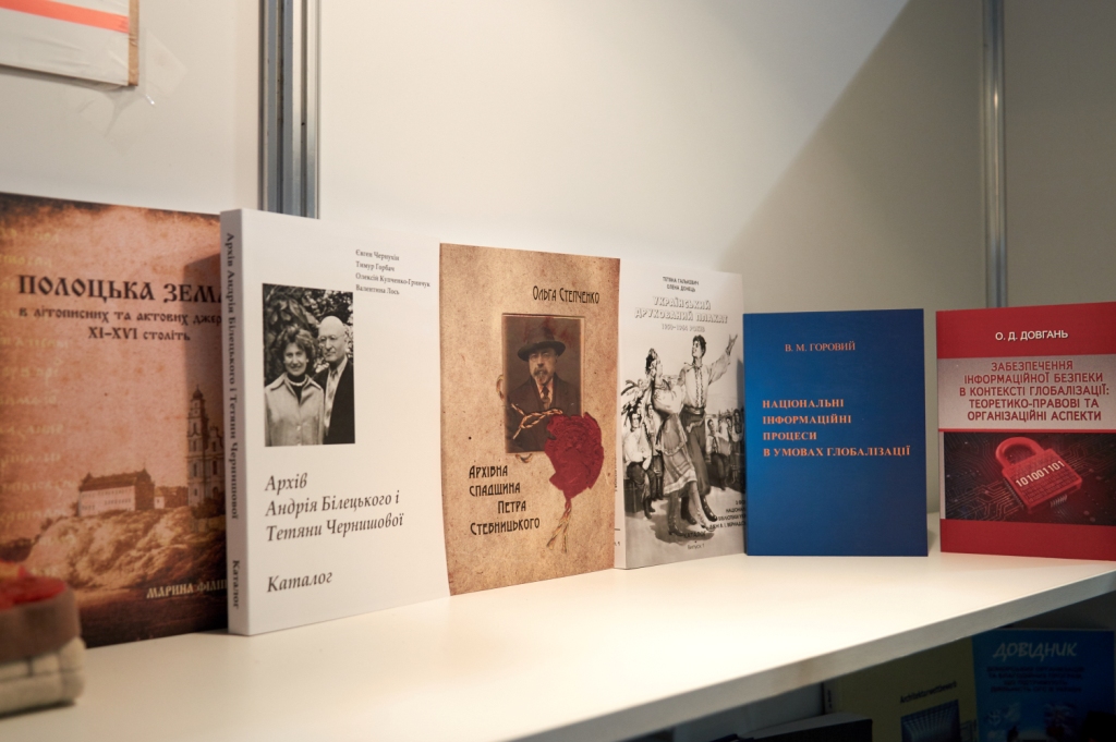 Особливе зацікавлення відвідувачів викликали представлені на стенді видання, що репрезентують результати наукових досліджень НБУВ, зокрема, монографії: Володимира Попика Ресурси довідкової біографічної інформації: історичний досвід формування, сучасний стан, проблеми та перспективи розвитку (2013) та Галини Ковальчук «Український науковий інститут книгознавства (1922–1936)» (2015); наукові каталоги: Ірини Клименко «Архів українського мистецтвознавця Б.С. Бутника-Сіверського (1901–1983) (2015); Олега Яценка та Надії Любовець «Українські персональні бібліографічні покажчики (1856-2013)» (2015), а також випуски каталогів відділу газетних фондів «Газети України… у фондах НБУВ».
