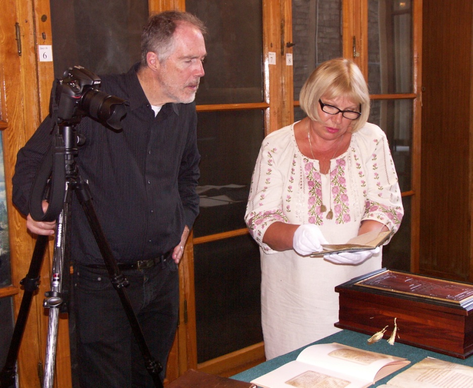 Незабутні враження справили на фотографа й духовні скарби, що зберігаються в НБУВ. Затамовуючи подих роздивлявся Роберт Доусон окремі екземпляри з колекцій інкунабул, палеотипів, українських і іноземних стародруків; рукописні книжки та актові документи грецькою, латинською, арабською, слов'янськими, єврейськими та іншими мовами; гравюри майстрів17–20 ст.; раритетні газетні та нотні видання; книжки, що побачили світ завдяки діяльності української діаспори в США.