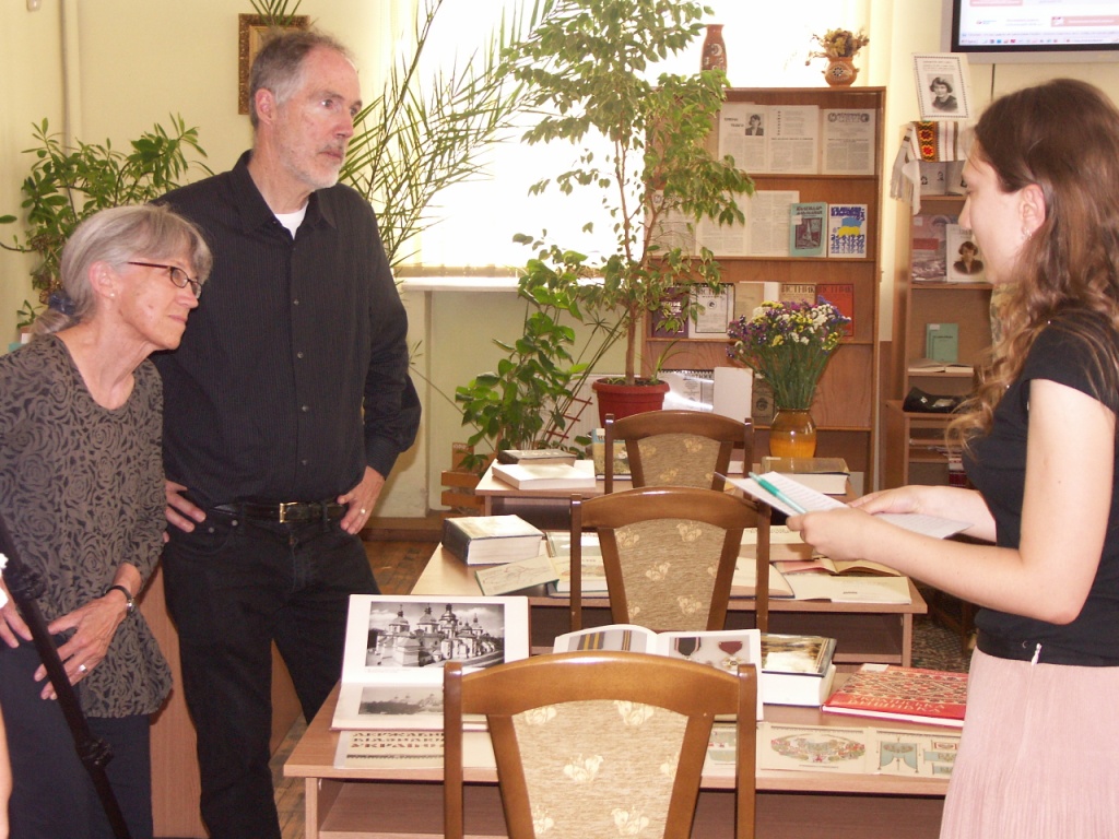 Цікаво і детально про історико-культурні фонди НБУВ американському гостю розповіли завідувач відділу стародруків і рідкісних видань Наталія Бондар, завідувач відділу фондів рукописної спадщини Ольга Степченко, завідувач відділу газетних фондів Ольга Вакульчук, завідувач відділу образотворчих мистецтв Гліб Юхимець, завідувач відділу музичних фондів Лариса Івченко і науковий співробітник відділу зарубіжної україніки Олеся Дзира.