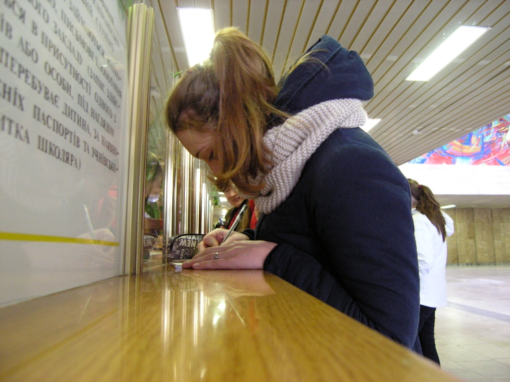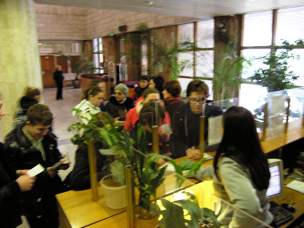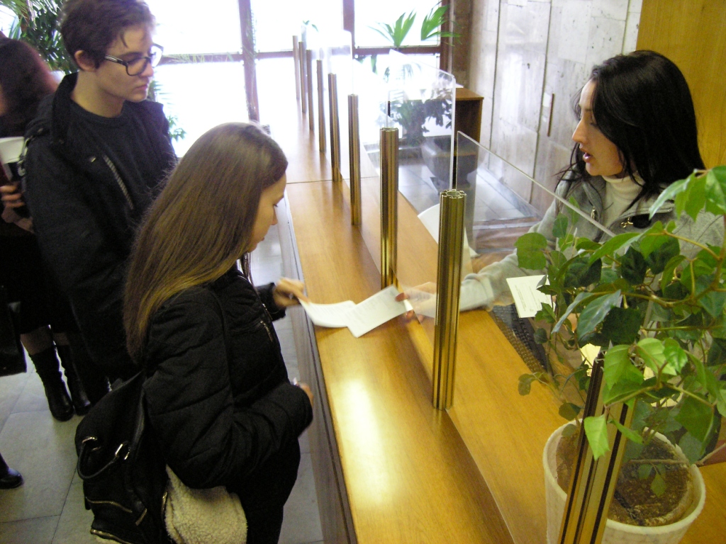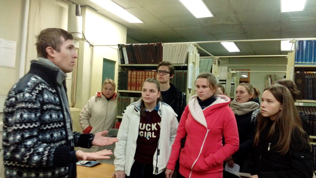 Першими гостей зустріли у секторі запису читачів. Співробітники сектору Жанна Скорябкіна (провідний бібліотекар) та Наталія Русецька (бібліотекар І категорії) зареєстрували нових користувачів, видали їм читацькі квитки та ознайомили юних науковців з правилами користування НБУВ.