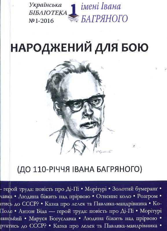 3. Народжений для Бою : зб. матеріалів до 110-річчя Івана Багряного / Фундація ім. Івана Багряного ; упоряд. Сергія Козака. – Київ : Укр. б-ка ім. Івана Багряного, 2016. – 140 с. – (Українська бібліотека ім. Івана Багряного ; 2016, № 1).