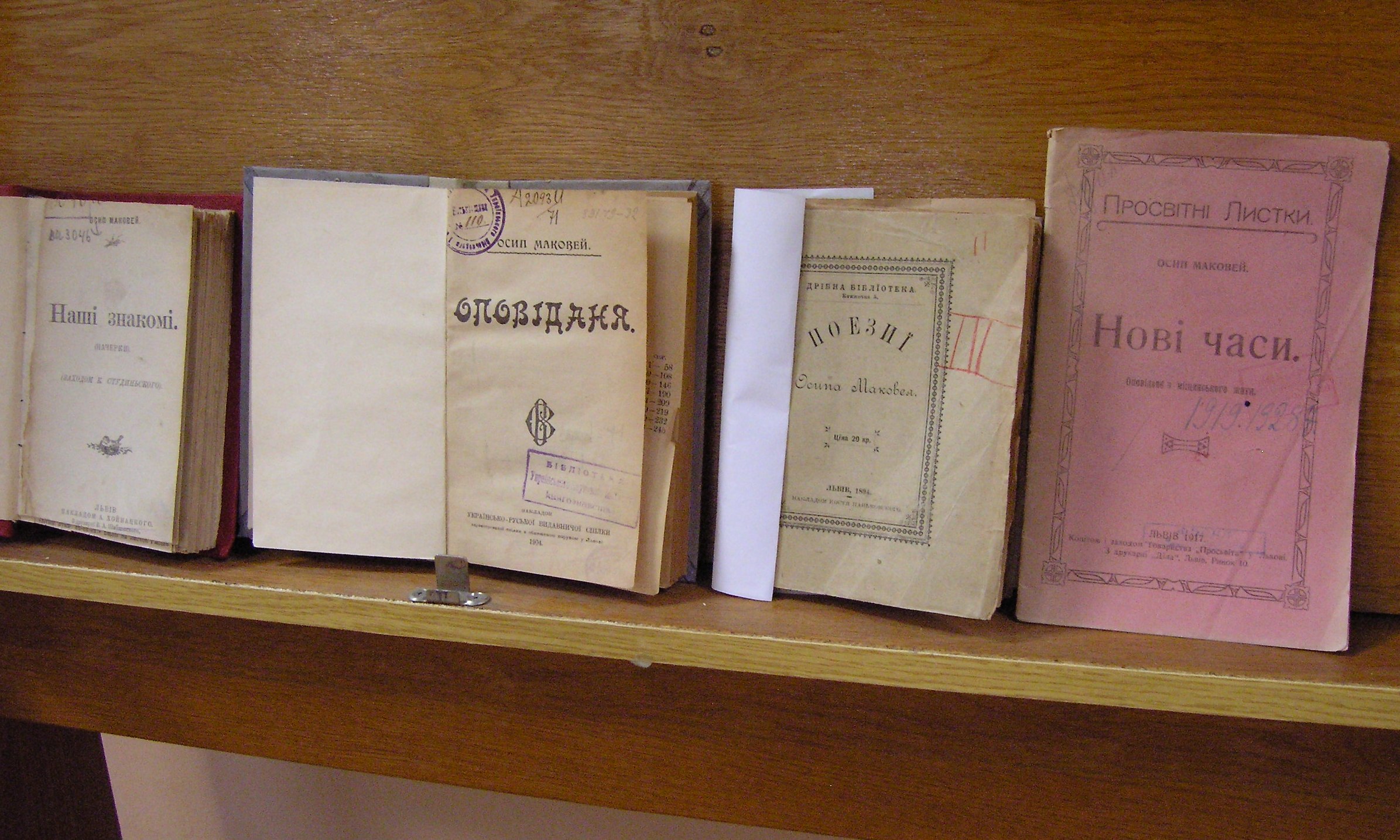 В експозиції представлені видання творів Осипа Маковея та літератури про нього, що зберігаються в основному фонді НБУВ.