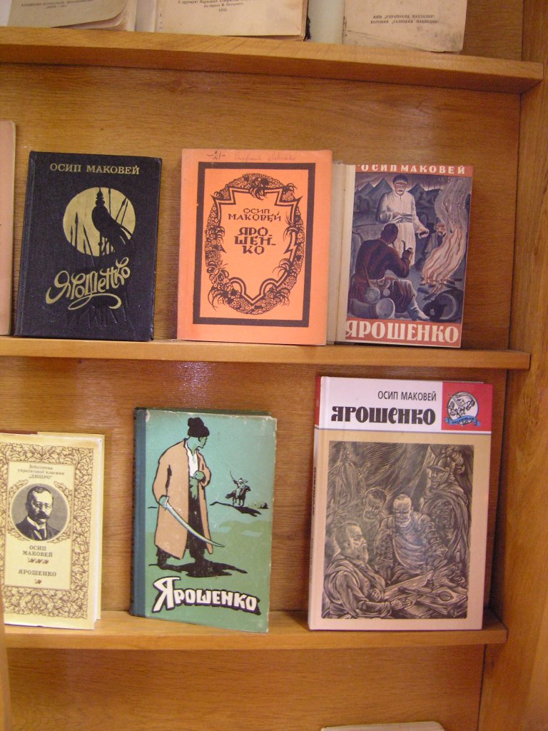 Доповнюють експозицію сучасні видання творів Осипа Маковея, що побачили світ за радянських часів та в роки незалежності України. Поміж них – добірка видань різних років знакової історичної повісті «Ярошенко», у якій висвітлюються події Хотинської війни 1620–1621 років.