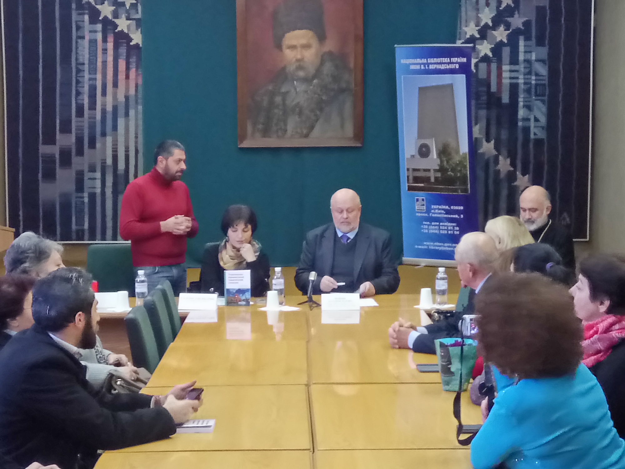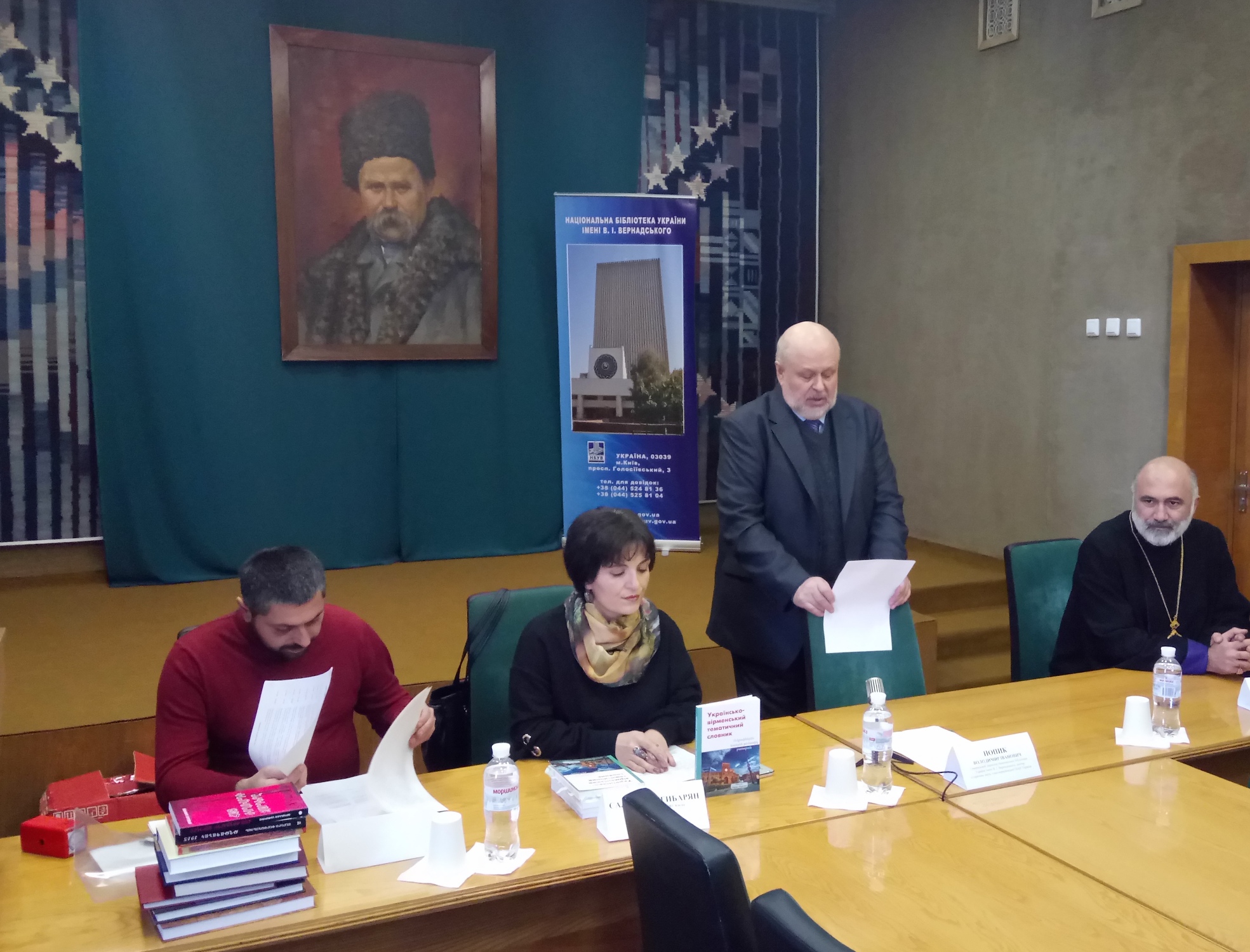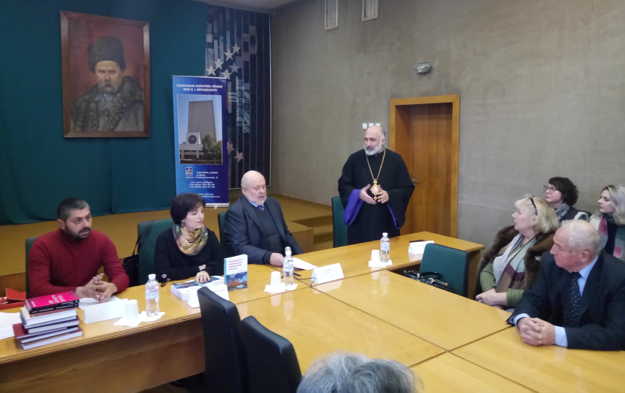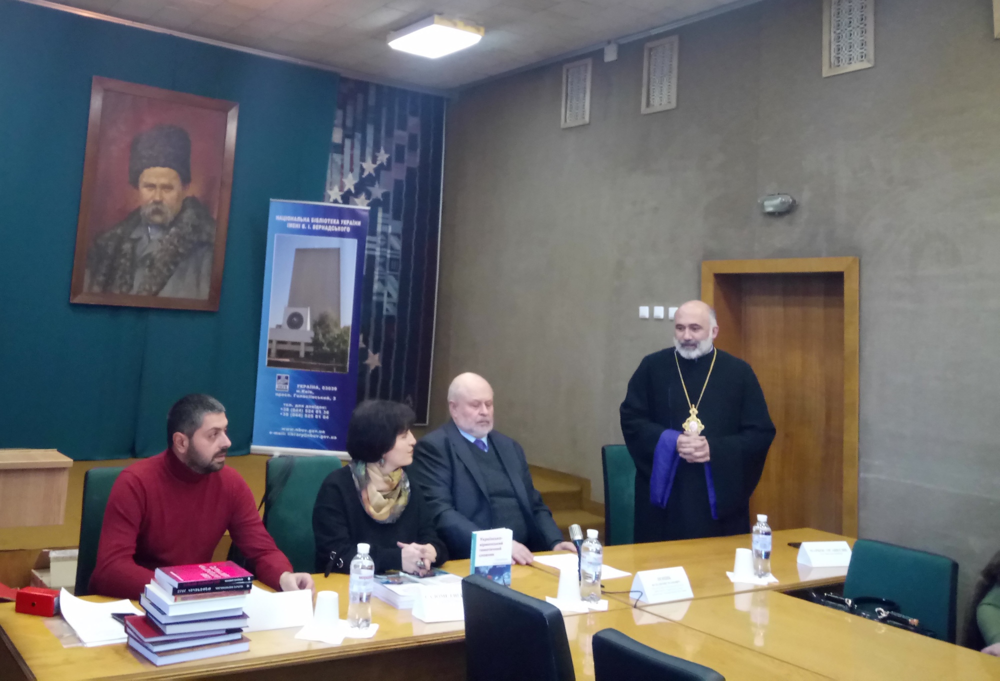 Захід розпочався із привітального слова Генерального директора НБУВ Попика Володимира Івановича та Голови Української єпархії ВАЦ єпископа Маркоса Оганесяна. З нагоди чергової зустрічі та зміцнення дружніх зв’язків з вірменською спільнотою Головою історико-культурного комітету СВУ, українським істориком Давідом Давтяном було подаровано колекцію вірменознавчих видань для поповнення бібліотечних фондів НБУВ. Паном Давтяном було висловлено побажання подальшої співпраці Національної бібліотеки України імені В. І. Вернадського та Спілки вірмен України з метою ознайомлення громадськості з культурним надбанням вірмен.