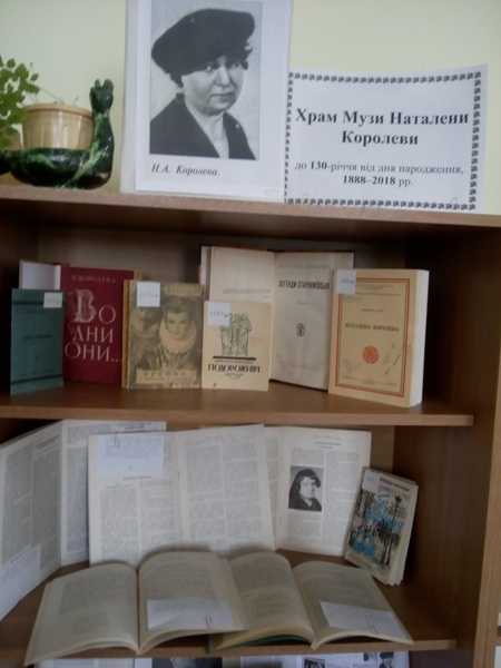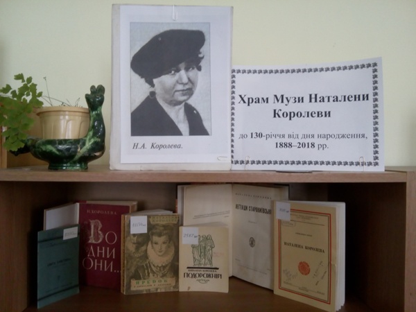 У читальній залі відділу зарубіжної україніки відкрито книжкову виставку «Наталена Королева – 130 років від дня народження (1888–1966)», приурочену до 130-річчя від дня народження Наталени Андріанівни Королевої (03.03.1888–01.07.1966), письменниці, мистецтвознавця, археолога, незвичайної в українській літературі характером своєї творчості й своїм надзвичайно цікавим життям.