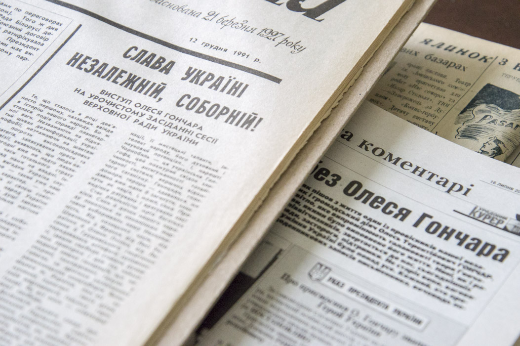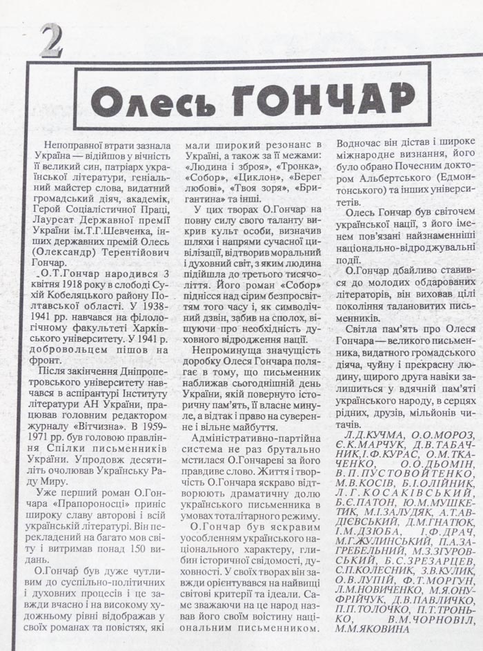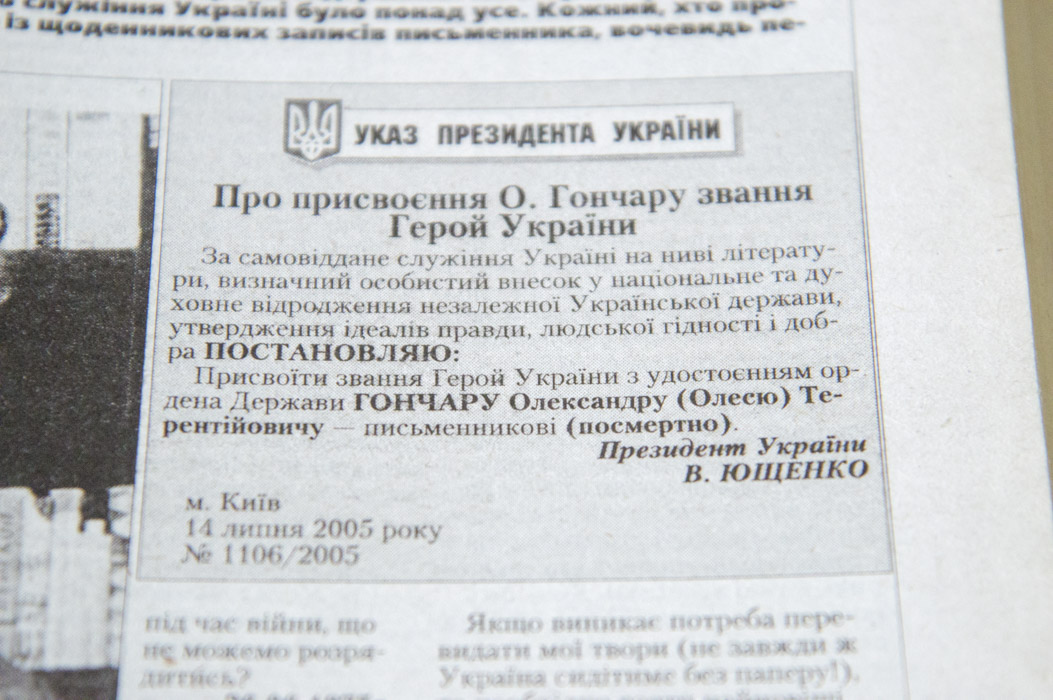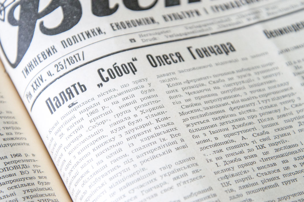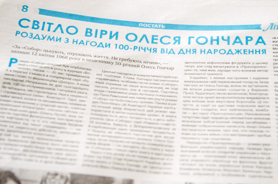 Відділ формування та використання газетних фондів підготував виставку газет до 100-річчя Олеся Гончара.