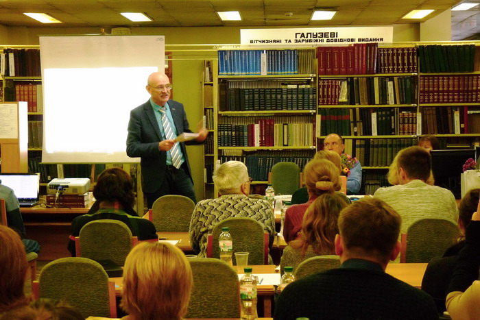 Відомий дослідник видань української діаспори, доктор Українського Вільного Університету С. Б. Козак презентував учасникам семінару та подарував Бібліотеці свої нові праці: ґрунтовне тритомне бібліографічне дослідження «Історія української діаспори на сторінках часопису «Українські вісті» (Німеччина, 1945 – США, 2000) : систематичний покажчик змісту» (Київ, 2017) та книгу «Іван Багряний (життя і творчість в ілюстраціях)» (Київ, 2018).