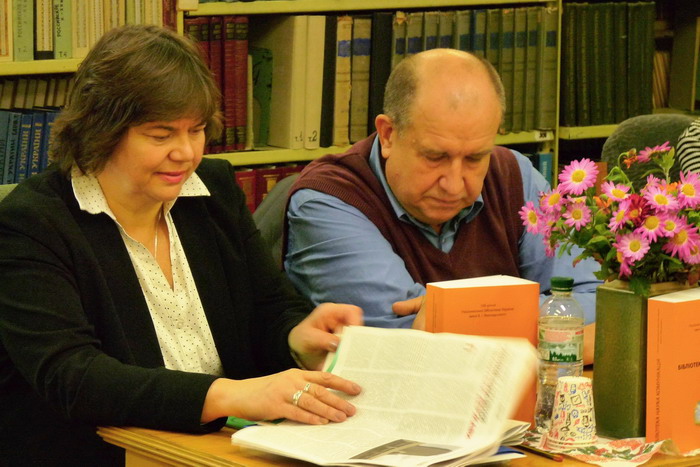 Широкий спектр питань розвитку національного бібліографічного ресурсу розглянули співробітники відділу національної бібліографії НБУВ. Розлогий виступ завідувача відділу НБУВ, доктора філологічних наук, професора С. С. Кіраля про літературознавчий бібліографічний доробок Мирослава Мороза був сповнений невідомих слухачам життєвих обставин знаного бібліографа-літературознавця, з яким мав честь бути особисто знайомим доповідач. Молодший науковий співробітник НБУВ С. А. Дзюбич торкнулася питань відображення творчості Лесі Українки в українській бібліографії. Науковий співробітник НБУВ Л. С. Новосьолова висвітлила наукову діяльність відділу національної бібліографії НБУВ у контексті формування Репертуару української книги. Доповнила її виступ оглядом бібліографічних видань НБУВ науковий співробітник НБУВ, кандидат історичних наук І. Г. Лиханова. Про важливий напрям роботи відділу – бібліографічну шевченкіану НБУВ – натхненно розповідала науковий співробітник НБУВ І. Д. Войченко.