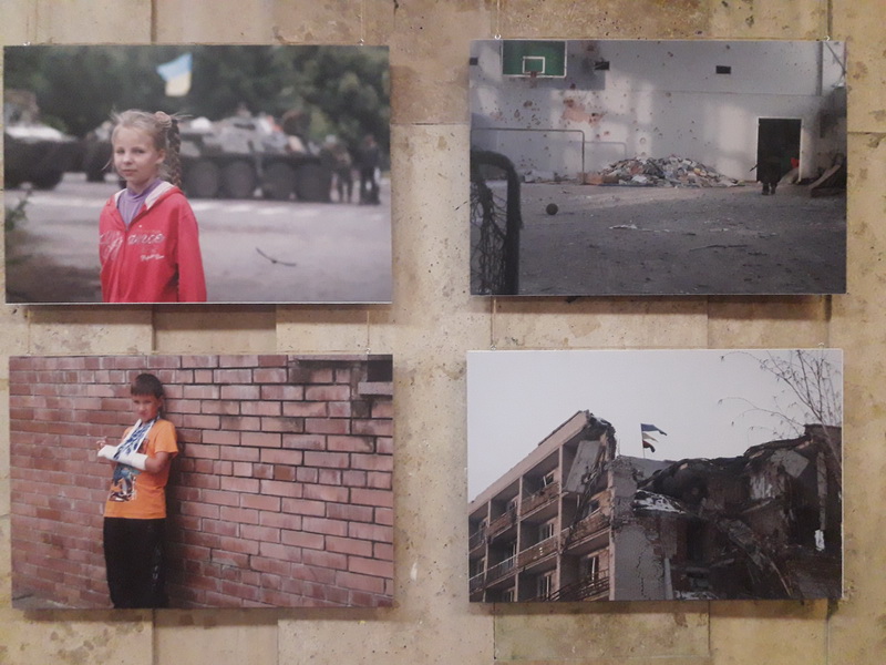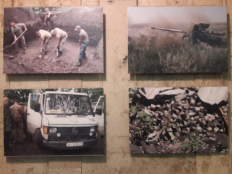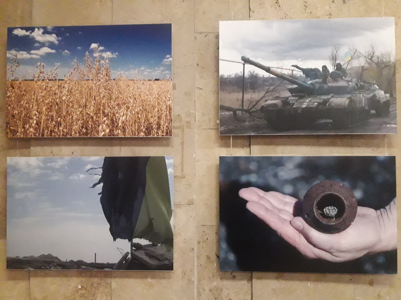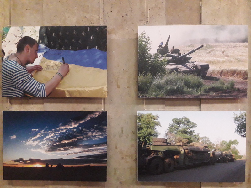 84 світлини представили фотохудожники Євген Шваб та Олександр Маматов. Вони самі – колишні військові. Тому кожен знімок – як свідчення «зсередини», чесний, правдивий і промовистий. 84 фоторозповіді про будні воїнів, про колись мирну, а тепер сплюндровану землю, на якій замість хліба війна сіє осколки і смерть, про зруйновані населені пункти, знедолених мешканців, тривоги і чекання солдатських родин. Про ворожу підступність, біль і мужність наших захисників.