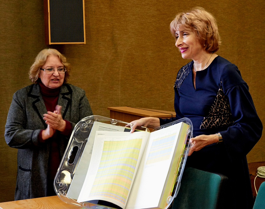 З об’єктивних причин не вдалося побувати на урочистих заходах, присвячених 100-річчю заснування Національної бібліотеки України імені В.І. Вернадського, нашим давнім друзям – кафедрі архівознавства та спеціальних галузей історичної науки Київського національного університету імені Т.Г. Шевченка. Тож 5 березня на засідання спеціалізованої вченої ради НБУВ завітала завідувач цієї кафедри, доктор історичних наук, професор Марина Геннадіївна Палієнко, щоб вручити генеральному директору НБУВ Любові Андріївні Дубровіній вітальну адресу та ювілейний подарунок. Він виявився і традиційним, бо це книга, і оригінальним водночас – навіть для бібліотеки, якій начебто не звикати до різних книг. Подарунок – захищений спеціальним міцним футляром велетенський за розміром Атлас сучасної архітектури світу англійською мовою, плід роботи відомого міжнародного видавництва Файдон, де зібрані шедеври архітектурної думки останнього часу з багатьох країн. Сам атлас теж можна вважати зразком сучасного фотомистецтва – на такому високому поліграфічному рівні здійснене це видання.