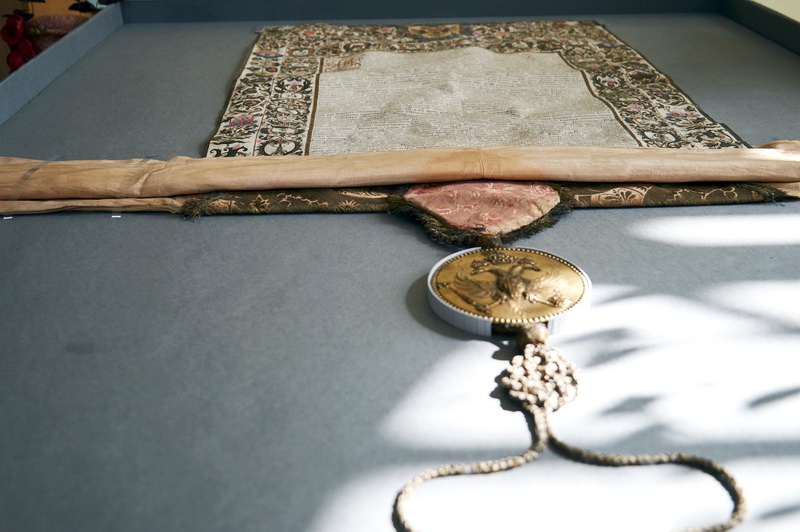 Історія вимушених мандрів Грамоти Петра І з цих стін до Німеччини й назад заслуговує окремої докладної розмови, що й буде зроблено пізніше. А на тепер слід відзначити, що цей документ має велику історичну цінність. Грамота була вивезена в роки Другої світової війни з колекції рукописного відділу Бібліотеки Академії наук України (нині Національна бібліотека України імені В.І. Вернадського), зокрема із зібрання документів Софійського монастиря, у складі котрого зберігалися документи Київської митрополії та колекції Софійської митрополичої ризниці. Цей факт встановлений завдяки дослідженням групи німецьких та українських експертів.