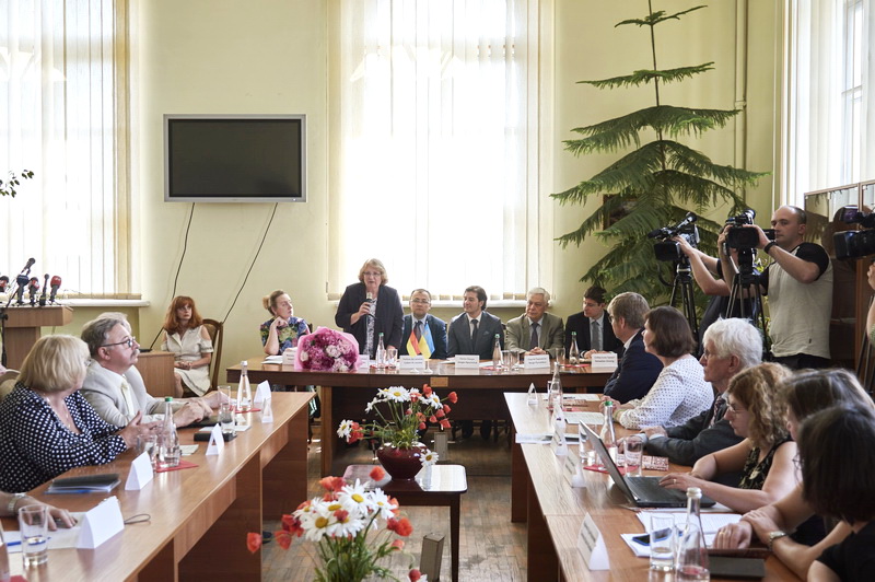 А 30 травня в урочистій атмосфері перший заступник міністра культури України Світлана Фоменко та генеральний директор Національної бібліотеки України імені В.І. Вернадського Любов Дубровіна підписали акт прийому-передачі культурної цінності. І цій хвилюючій події щиро аплодували присутні високі гості – віце-президент Національної академії наук України, голова Секції суспільних та гуманітарних наук НАН України академік Сергій Пирожков, радник Президії НАН України, почесний генеральний директор НБУВ академік Олексій Онищенко, заступник міністра закордонних справ України Василь Боднар, перший секретар Посольства Федеративної Республіки Німеччина в Україні Себастьян Ґроміґ, міністр культури Євген Нищук, директор Інституту Східноєвропейських студій Тюбінгенського університету Клаус Гества, українські та німецькі науковці.