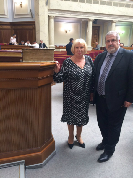 Берегиня Пересопницького Євангелія – директор Інституту рукопису НБУВ Ольга Петрівна Степченко. Ще за місяць до церемонії інавгурації багато засобів масової інформації вже звертались до неї з проханнями розповісти про цей легендарний експонат та показати його. Тож вона розповідала й показувала, розуміючи суспільний інтерес до раритету. А сьогодні Ольга Петрівна Степченко і заступник генерального директора НБУВ Людмила Вікторівна Муха супроводжували Євангеліє до Верховної Ради України.